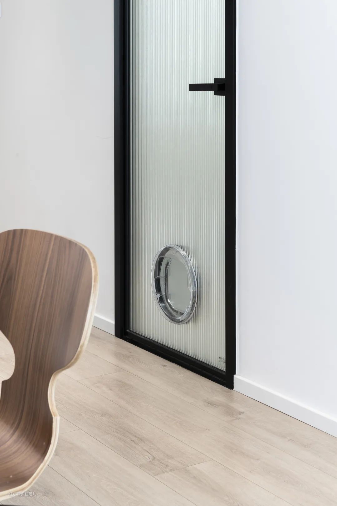 次卫门上留有洞口,方便猫咪进入里边的猫砂盆。 史先生还在猫砂盆上安装了人体传感器,当猫咪如厕时,次卫顶部的排风扇会开启,帮助室内通风。