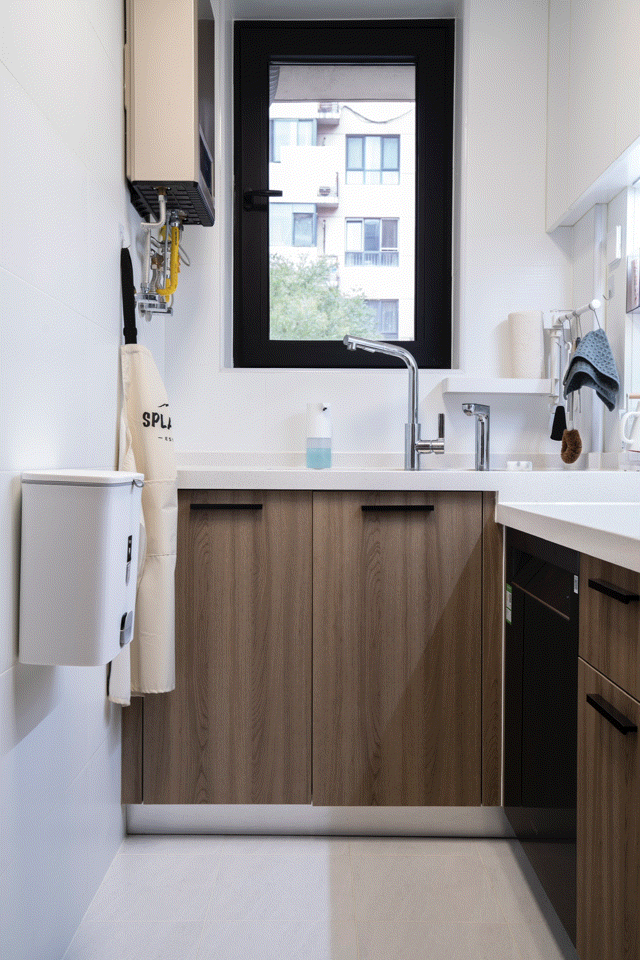 水槽底下的空间仅有 0.5㎡,但能塞下 RO 净水器、软水机、储物盒和各式小家电,可谓「螺蛳壳里做道场」,每一寸都不能浪费!