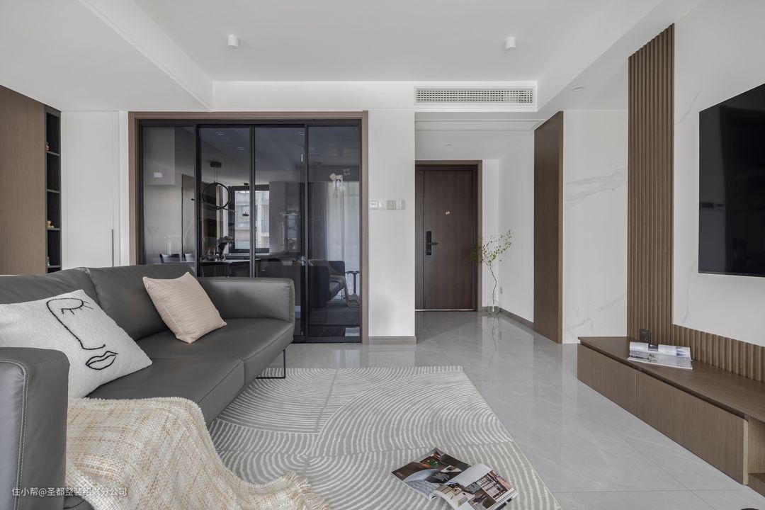 黑白配色经典、木饰面温润内敛、大理石质感高级,让现代风的简约美在客厅内自行游走,勾勒出舒雅、澄澈的空间面貌。