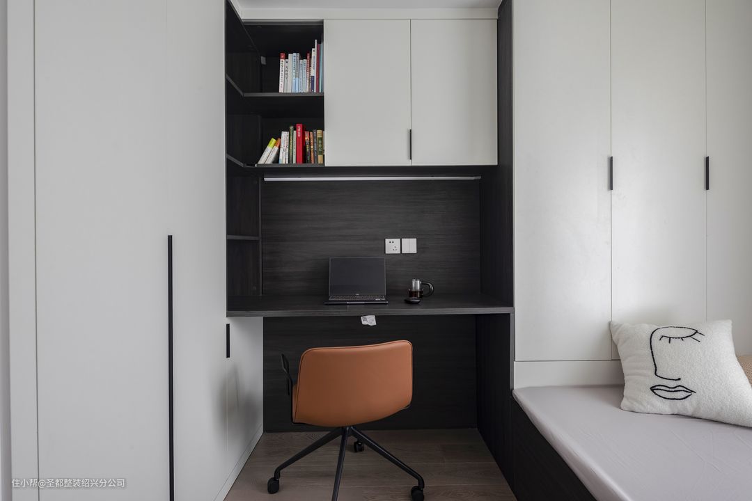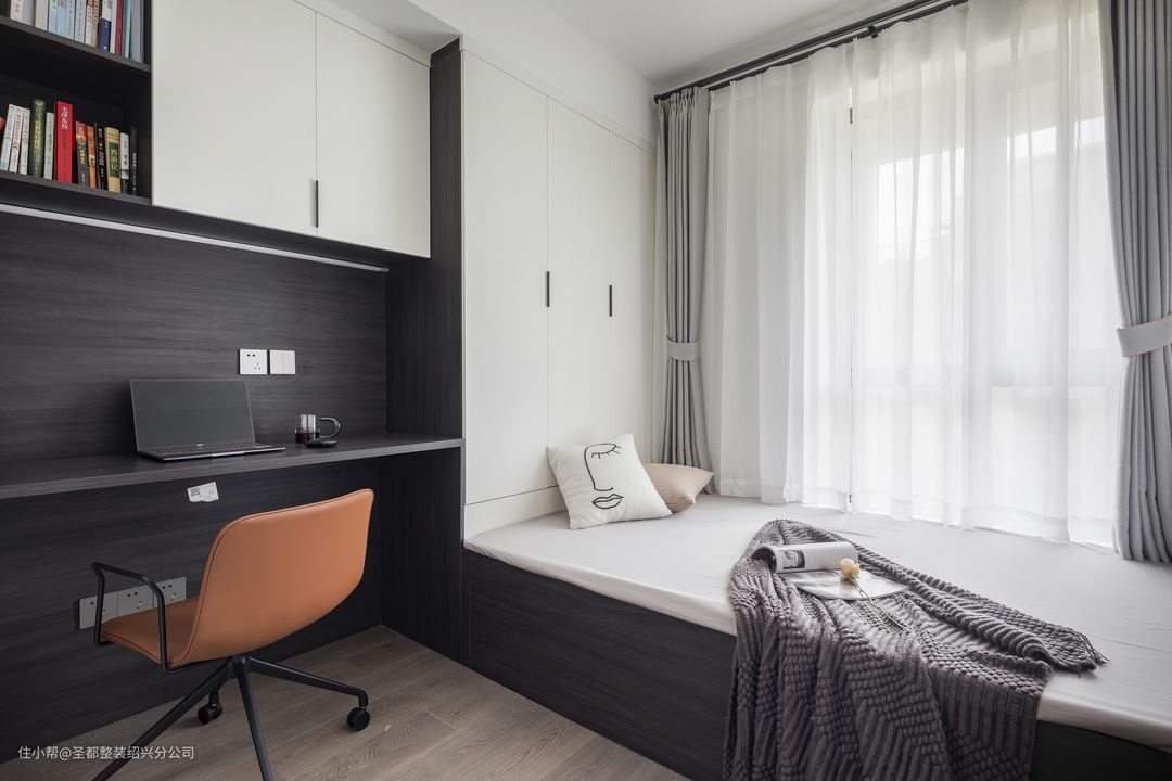 为了提高空间利用率,次卧设计成多功能房:集卧室、衣帽间、书房为一体,极大地提高了居住的舒适度。