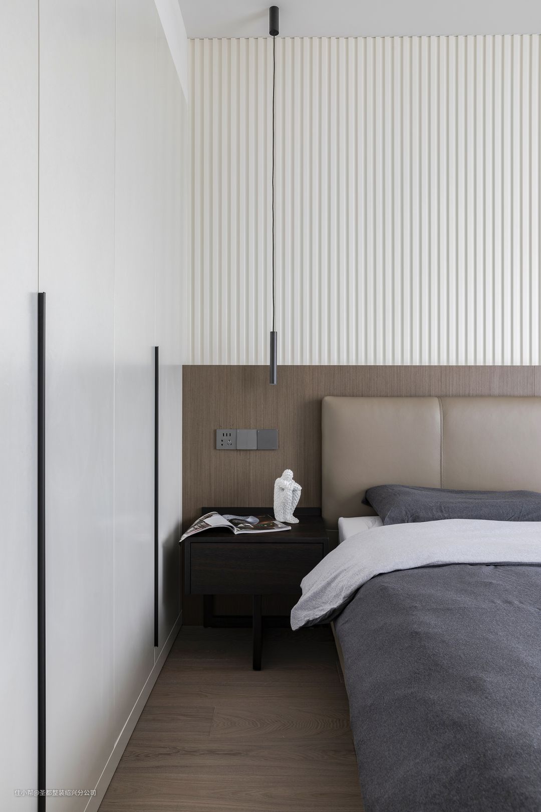 主卧延续了整体的质感与格调,低饱和度的配色加上原木的肌理,描绘出一个温情满满的酣眠空间。