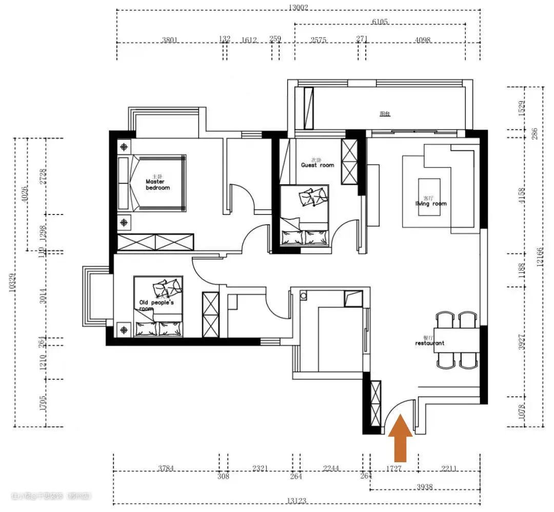 户型方正,结构并无硬伤,重点在软装上。户型亮点:【1】客厅拥有一个超大阳台,保证大厅的采光,客餐厅开放式布局,动线合理。【2】厨房位于户型一角,与餐厅连通,L型经典布局。