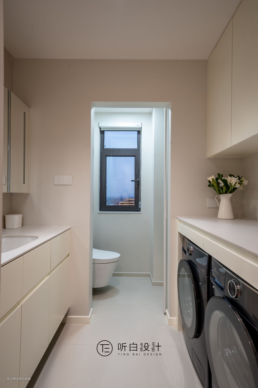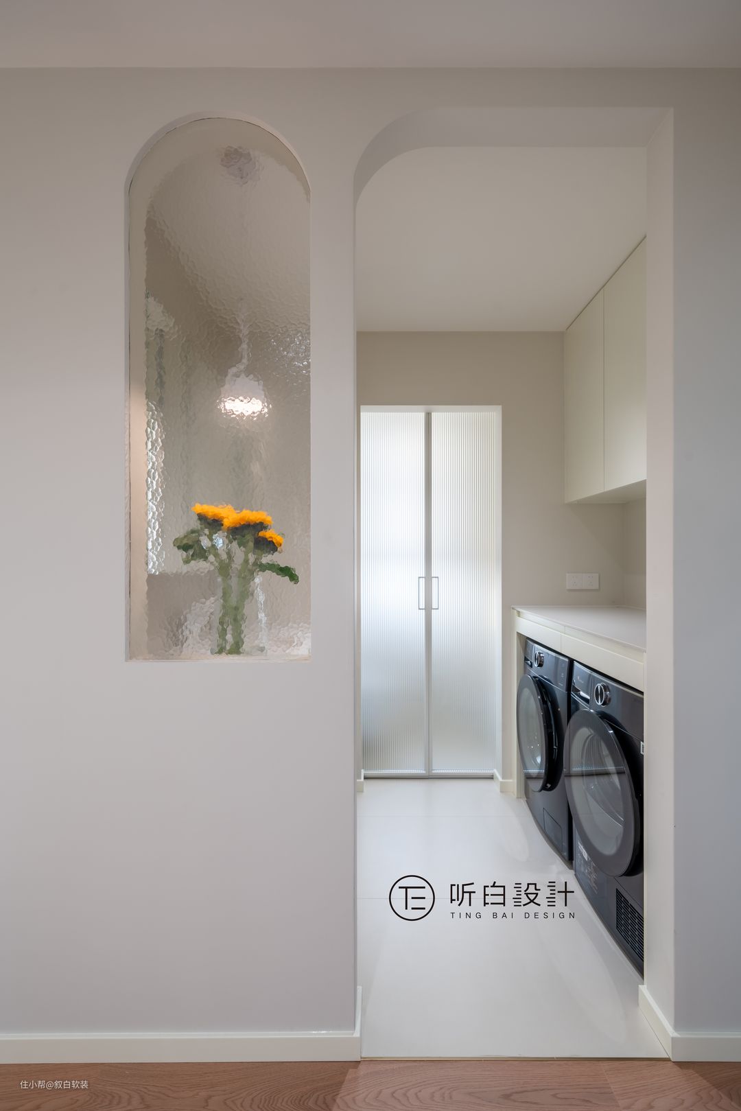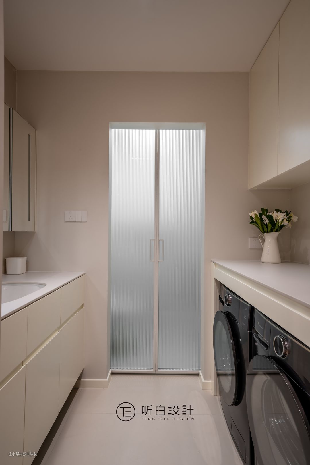 洗烘套装在水池对面选择水平放置,形成小小的洗衣房。
