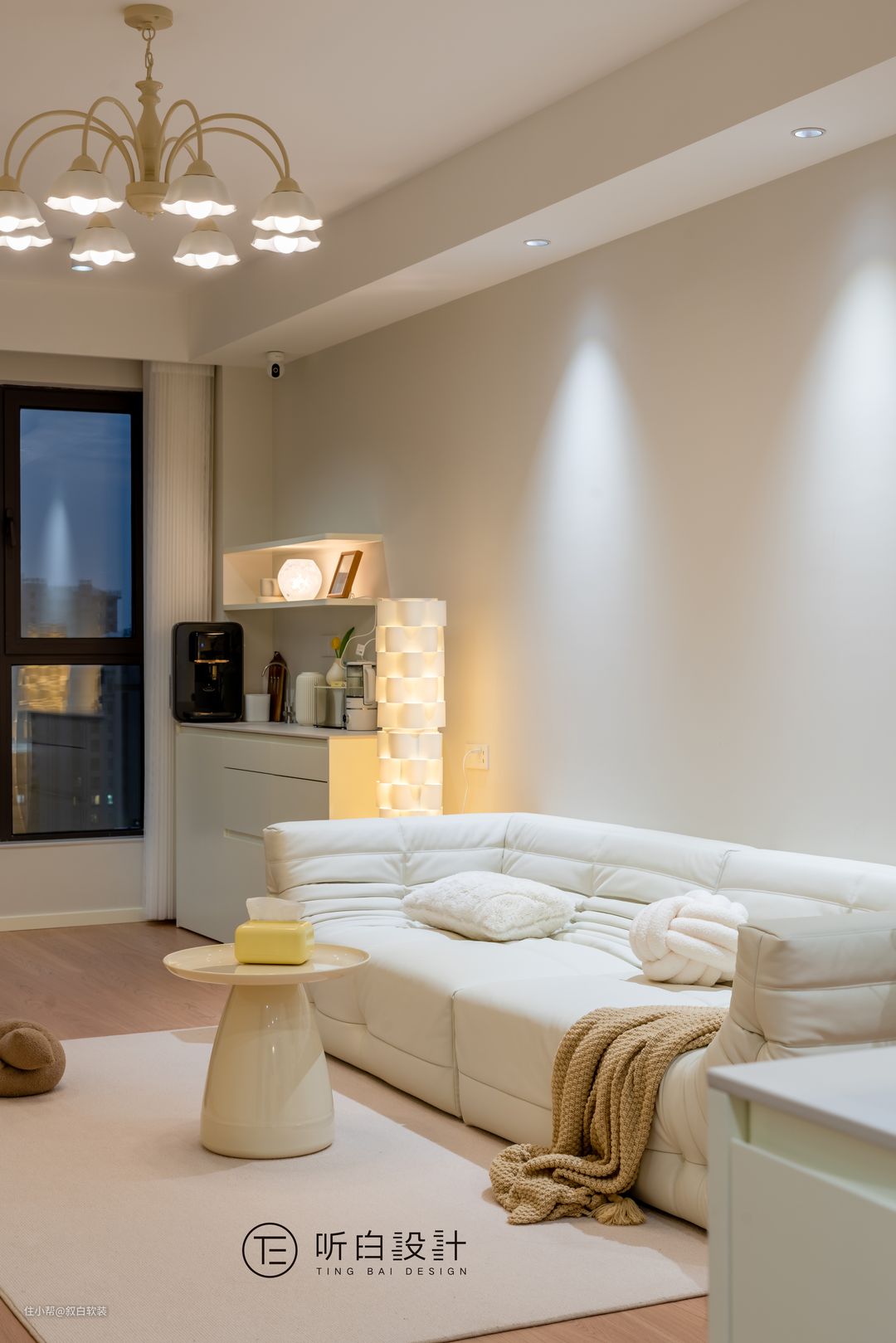 本案业主是一位网红生活博主小姐姐,热爱烹饪和美食,对于生活特别有自己的理解和感悟。她养了一只爱喵,过着一人一喵的独居生活,她将自己的生活分享到网上,得到广大网友的喜爱。 这也同样意味着她对居住环境颜值和功能的要求都很高,小姐姐选择法式奶油风的设计风格,这包含了她对浪漫生活以及美的追求。这套属于她自己的房子也同时兼具工作场景的属性。小姐姐是一个很有想法的人,对于自己的房子的构思也参考了很多粉丝的意见,因而,从细节到整体,都进行充分的沟通和设计,最终呈现小姐姐的梦想之屋。