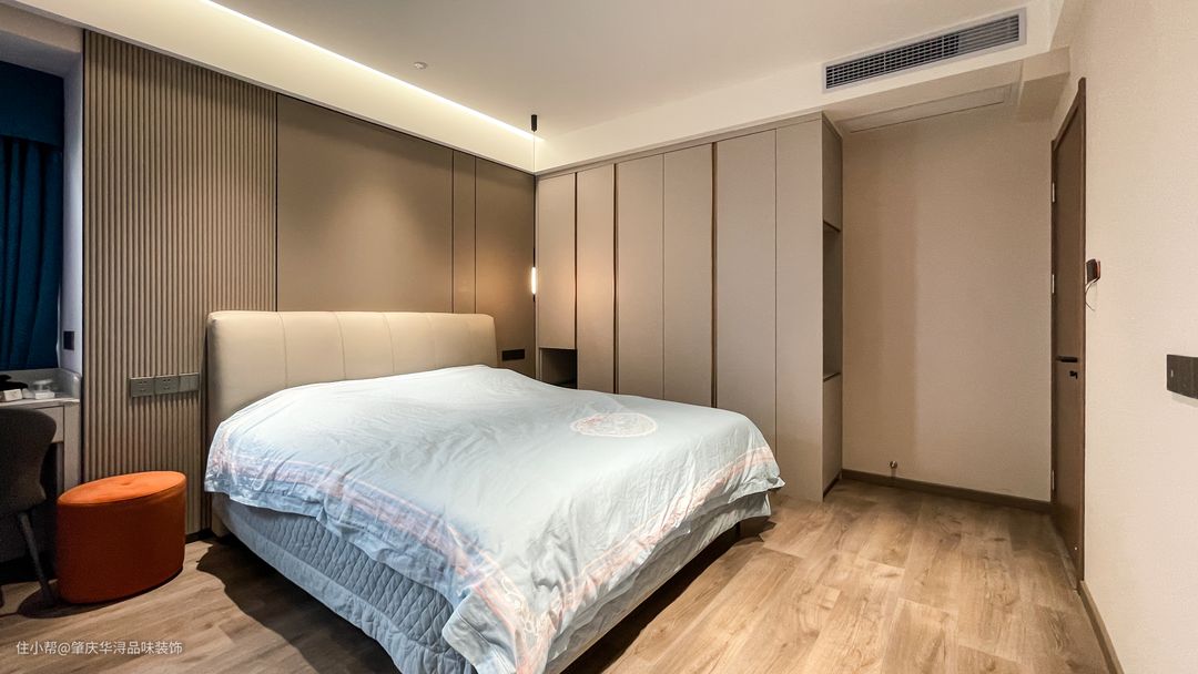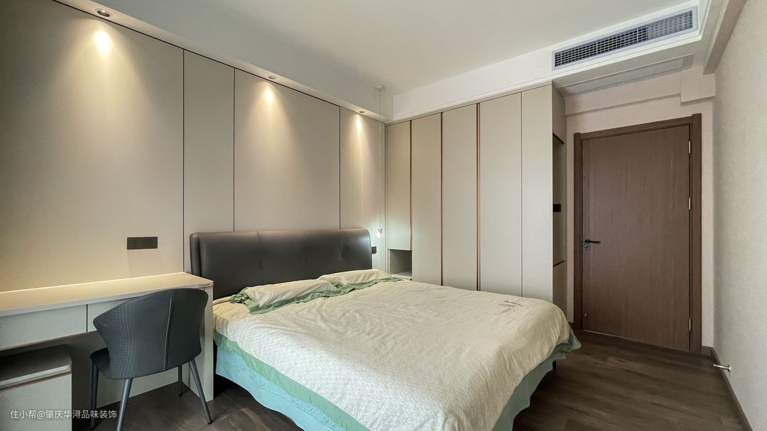 卧室空间设计 卧室安装中央空调,无主灯天花造型,简约舒适。