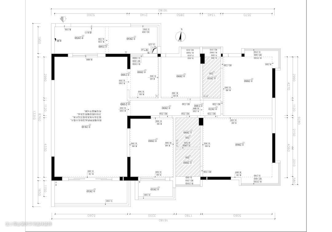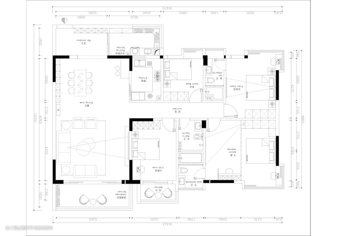 毛坯房屋主需求: ①客厅的采光通风效果不好,不考虑封窗,希望改善客厅的采光。 ②餐厅空间大,需要丰富使用餐厅的多功能空间,屋主希望改善就餐环境。 ③厨房空间面积大,女主人平时喜欢烹饪,希望可以放置更多的电器收纳功能。 ④保留4房,主卧空间大,屋主希望利用好主卧空间收纳。 ⑤卫生间需要多功能划分,需要扩大卫生间使用空间。 ⑥屋主希望把主卧改成收纳+办公的多功能使用区域