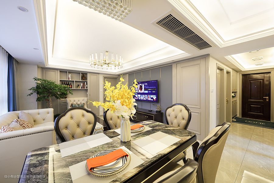 考虑到整体性和实用性,餐厅采用客厅的同款餐桌椅。