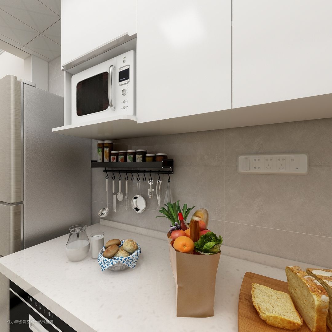 厨房内部模块化“四面八方”的储物组合,有效规避了杂物堆砌导致的杂乱,为美食烹饪提供了清爽干净的操作空间。