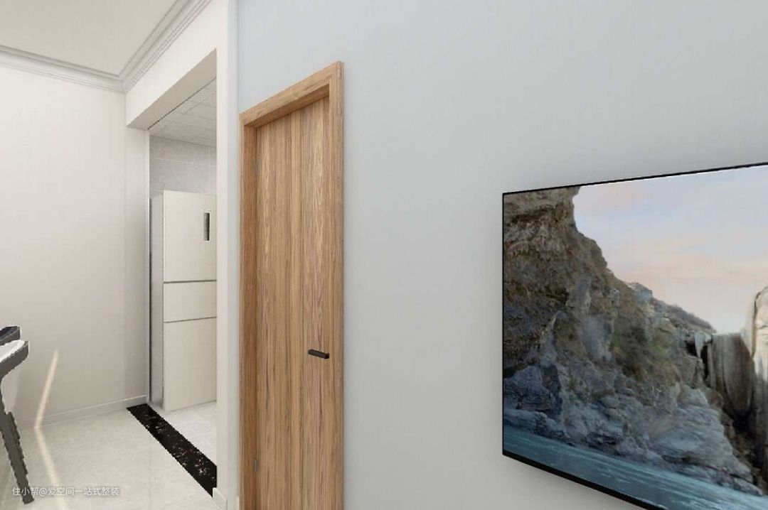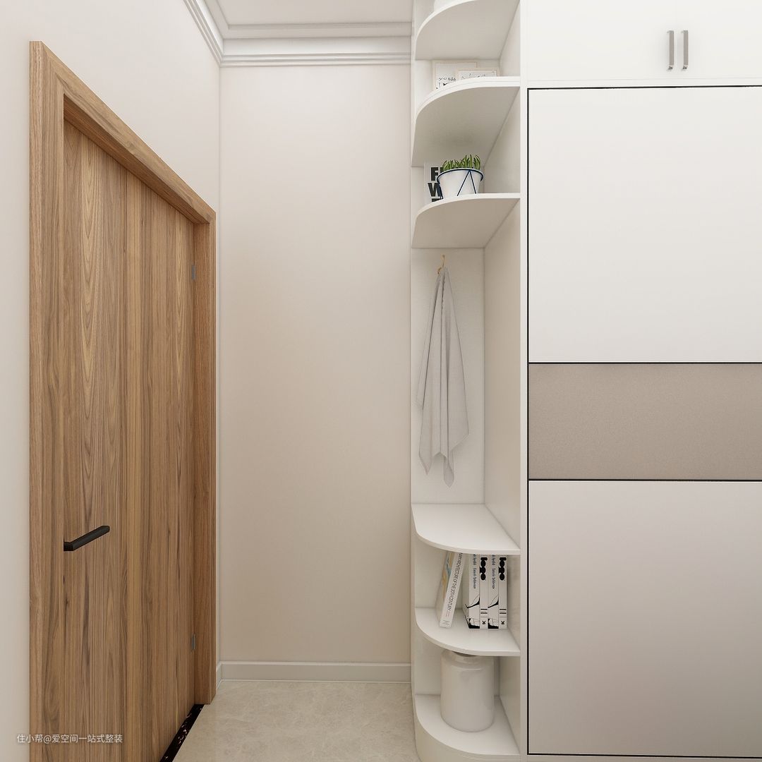 虽然是单面采光,但幸运的是,采光面还算大,朝南的方位使得阳光依旧能照进室内,拉上窗帘,进门后的视野更加干净