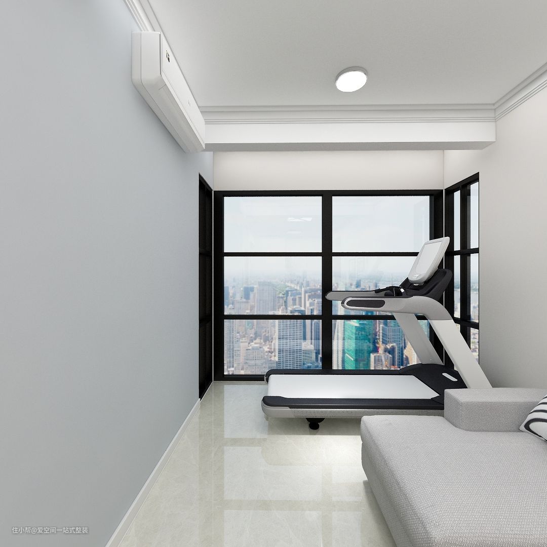 原始户型阳台面积就很小,没有晾晒衣服的需求,索性打开全部空间纳入客厅,放一台跑步机,在阳光下进行运动。