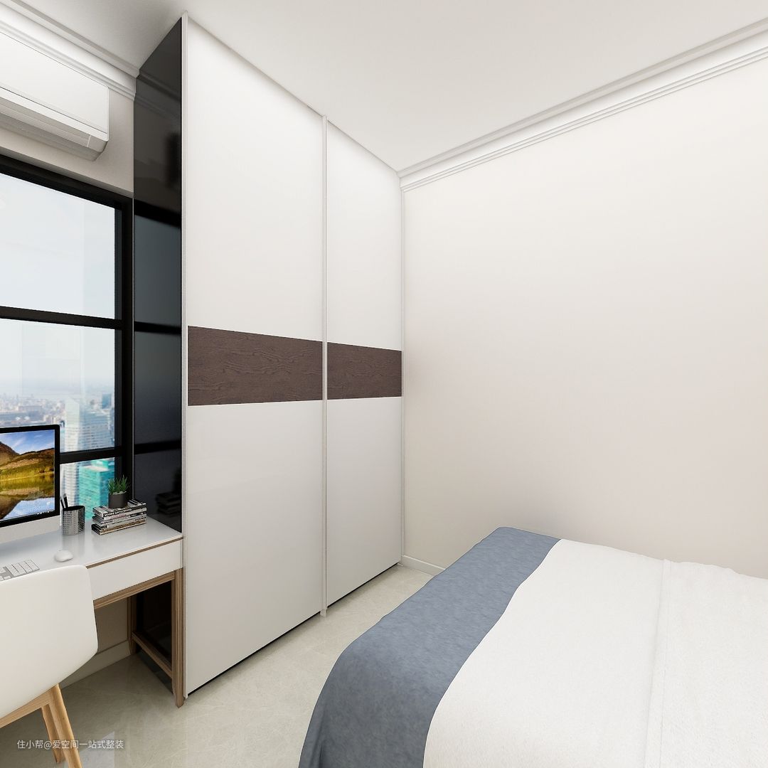 【屋主介绍】 人到中年总是压力倍增,屋主杨先生虽然已经三十多岁了,但还是单身状态,自己攒钱首付的小房子已经交付,因为工作忙碌整个装修过程战线拉得很长,但最终完工效果还是很满意的,只等着女主人的出现啦~ 【屋主需求】 1、屋主自己一个男士对于房屋的装饰和风格没什么好意见,只希望家里看起来简单一点,比较好打扫就可以了。 2、平时有健身的习惯,但因为工作原因没有太多时间泡健身房,就买了一台跑步机,要找个不扰民又宽敞的位置摆放。 【房屋信息】 面积:73㎡ 风格:现代简约风 户型:两室一厅一厨一卫 装修成本:13万 地点:广州 【设计方案】 1、整个房屋选择简约风格,对硬装做到极简搭配,客厅墙壁选用今年的爆款流行色“灰雾蓝”,高级又耐看。 2、厨房保留半包围结构,拆除垭口和门,这样可以达到半开放的效果,对于下厨比较少或者轻油烟的人群比较合适。 3、卧室床和办工桌衣柜相对,整个房间只有三个家具,非常宽敞,大开扇的玻璃窗下办公光线好,通风顺畅可以缓解长期对着电脑的疲惫。 4、次卧目前让给父母居住,以后考虑作为婚后的主卧,样式简单,推拉门的通顶大衣柜内部超大挂放空间不怕衣服褶皱。