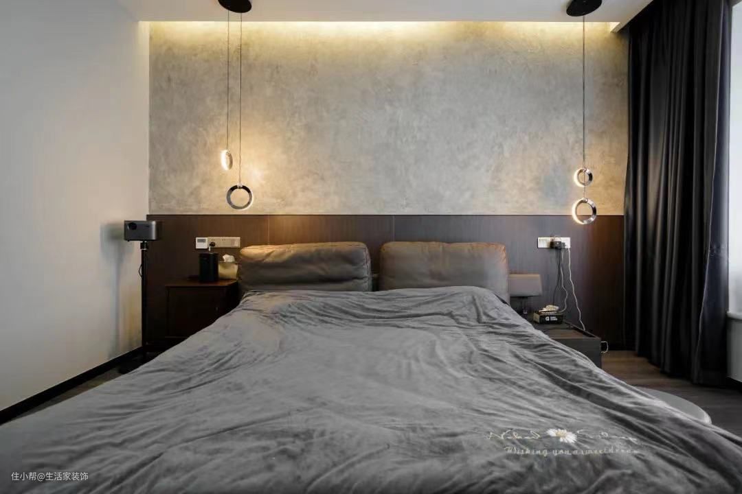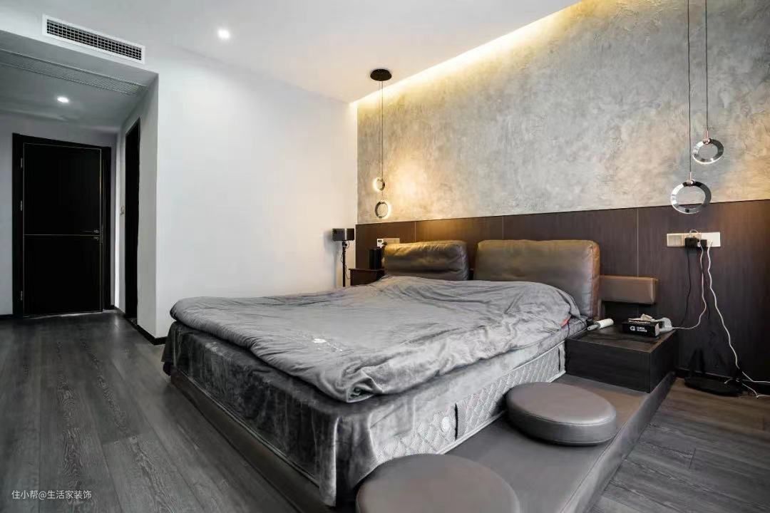 为了给业主打造舒适、放松的睡眠环境,设计师以无主灯设计来烘托氛围。同时采用了艺术漆装饰墙面,在阅读灯、灯带的映射下,浪漫的同时也让空间更有层次感。