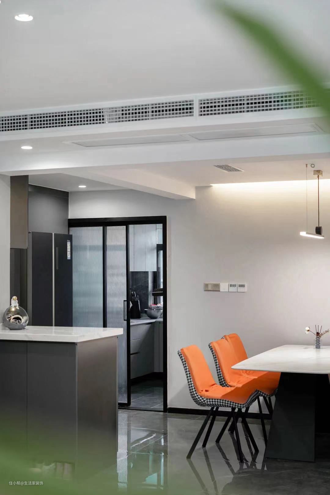 为了增加家人的互动,西厨预留了电位、水位,供烤箱、微波炉使用,提升生活乐趣。同时还打造了收纳空间,满足餐厅收纳。