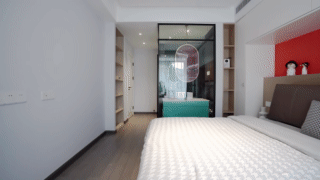 床的两侧以定制的一字隔板代替传统床头柜,底部释放出更多空间,有效利用好每一寸空间。