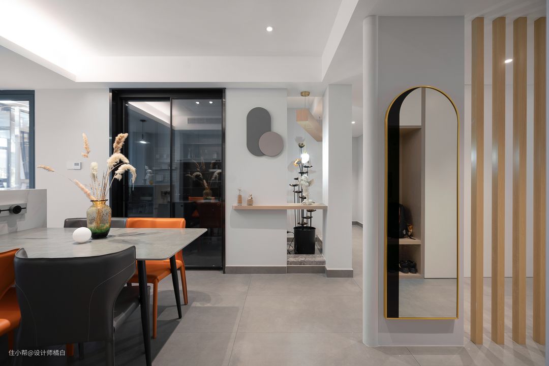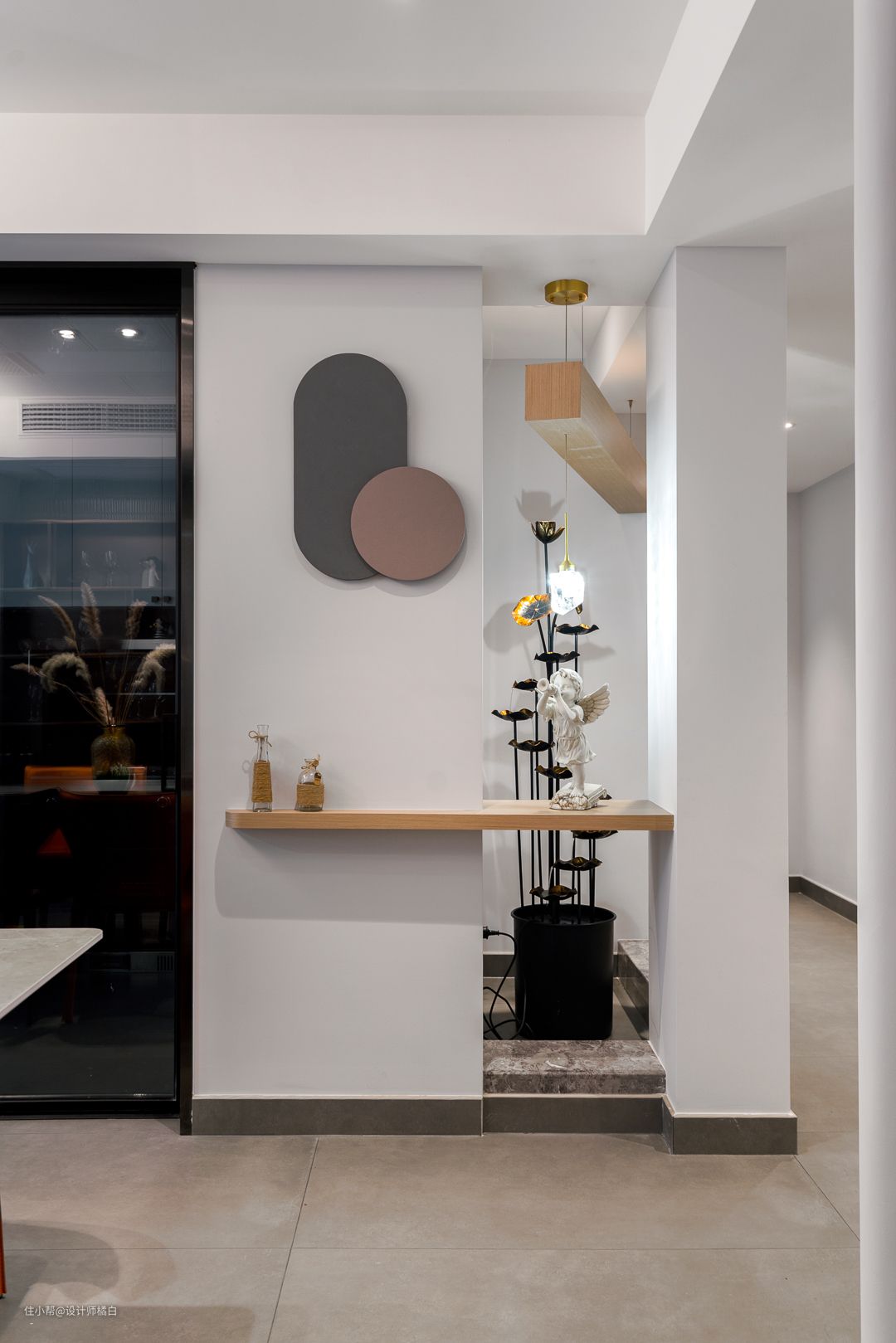 入户借助墙体利用构造穿插处理,设计出优雅的玄关小景,让开门的瞬间,家的温馨气息扑面而来,心情切换到放松的状态,回归静雅生活。
