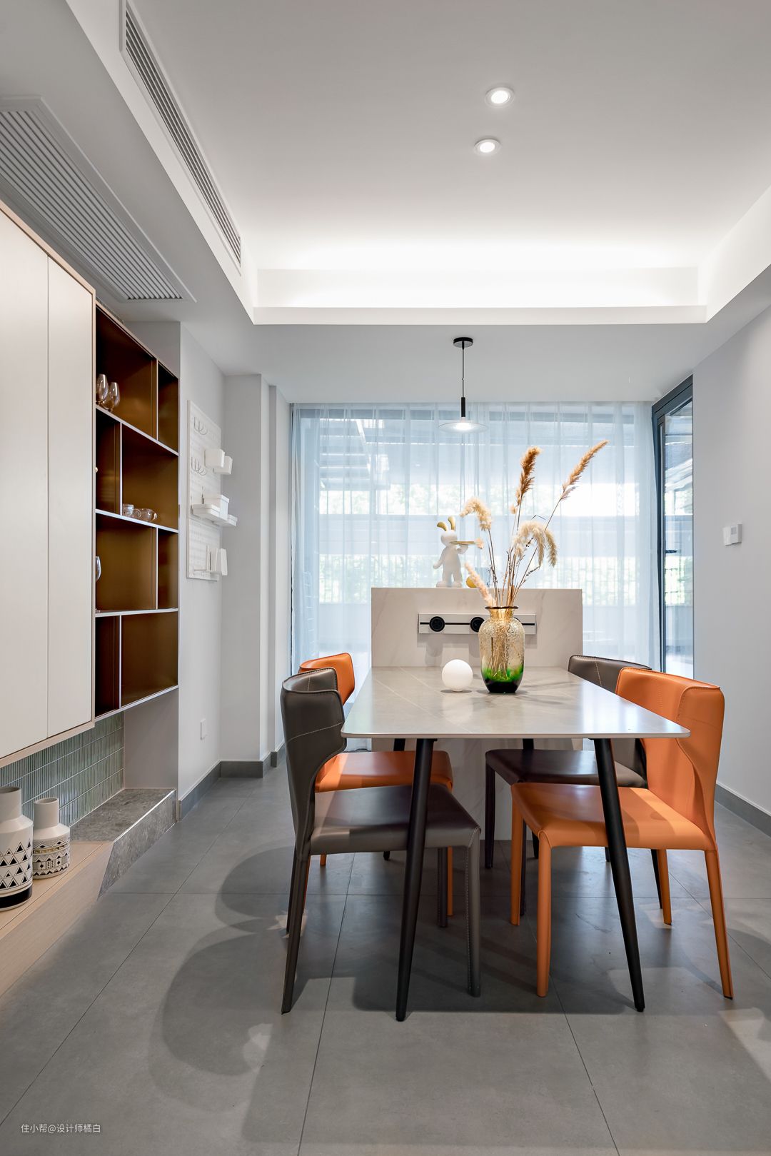 餐厅空间在配色上与客厅形成呼应,搭配也遵循简约的基调。