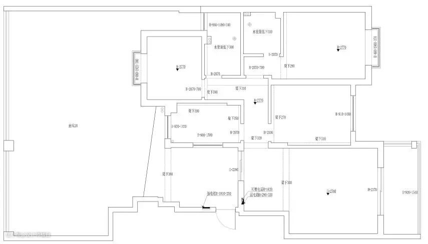 1. 入户过道走廊过宽,业主希望这部分空间能够加以利用; 2. 业主想要在阳台处有个开放式书房空间,和客厅连通增强互动感; 3.主卫是暗卫,希望通过设计可以借助一些光线。