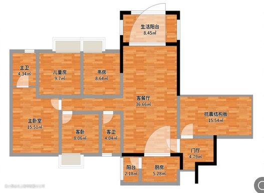 ①拆除进门结构板墙体,并砌墙隔成两个区域; ②拆除厨房与生活阳台之间的门,扩大厨房面积; ③主卧向客卧扩宽,定制到顶衣柜,满足收纳需求;