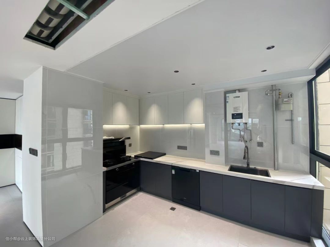 原户型厨房面积较小,因为业主一家人的饮食习惯是比较少油烟的,所以选择打通生活阳台扩容做成开放式。