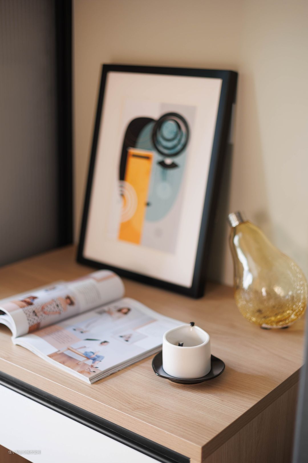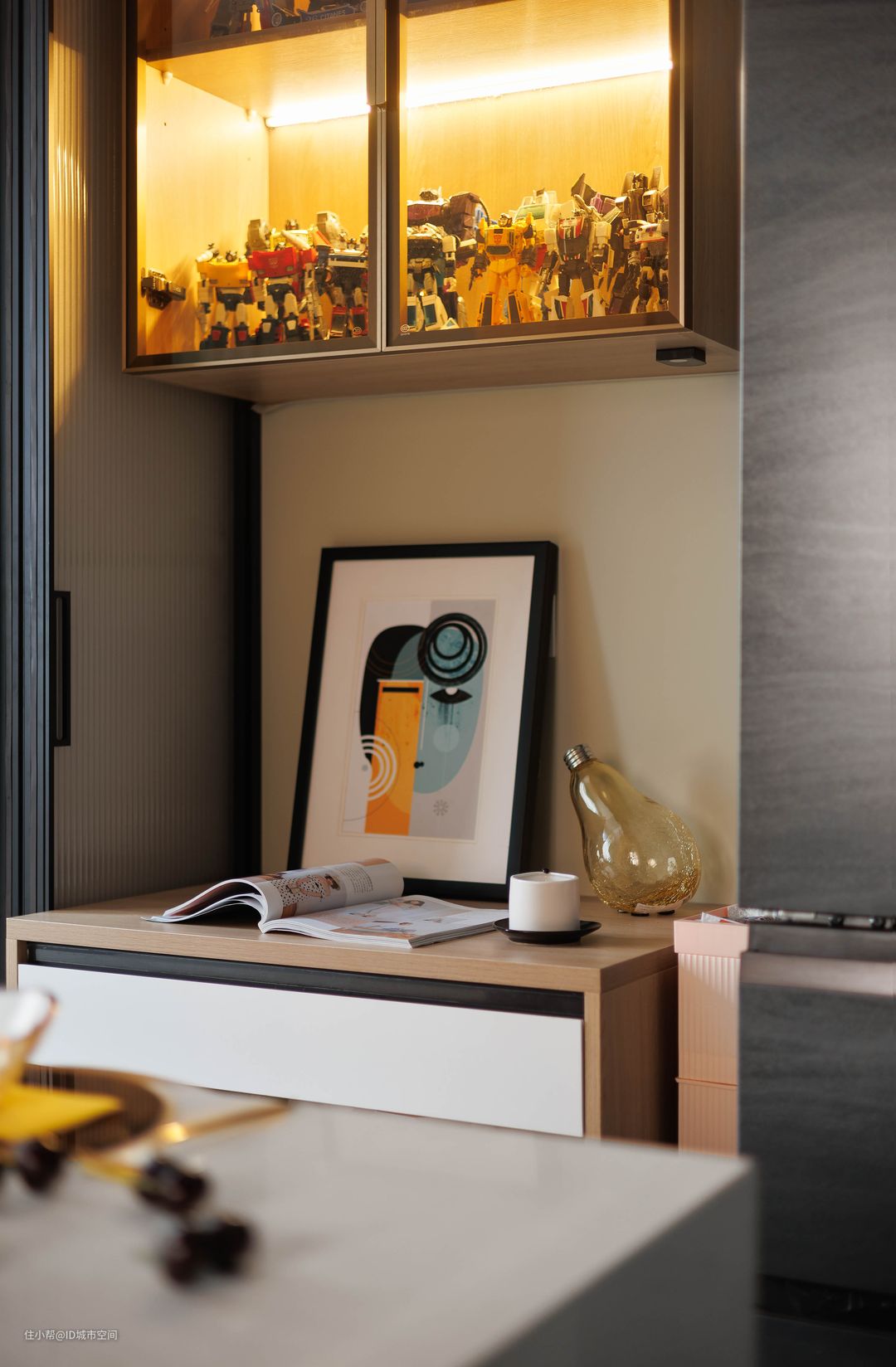 厨房在外面的公共区,这里没有拍新的照片。餐厅一个简单的操作台对于小户型来说就足够,对面还布置了书桌,主要是方便孩子平时做功课用。#客餐厅一体#现代简约#LOFT#小户型#老房改造#ID城市空间