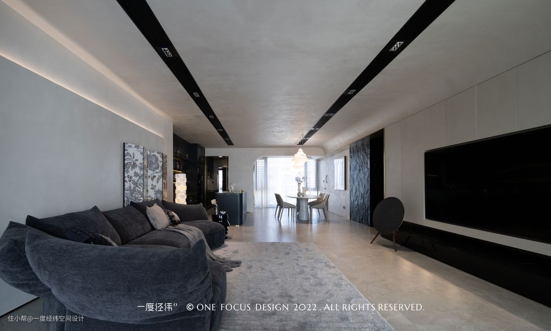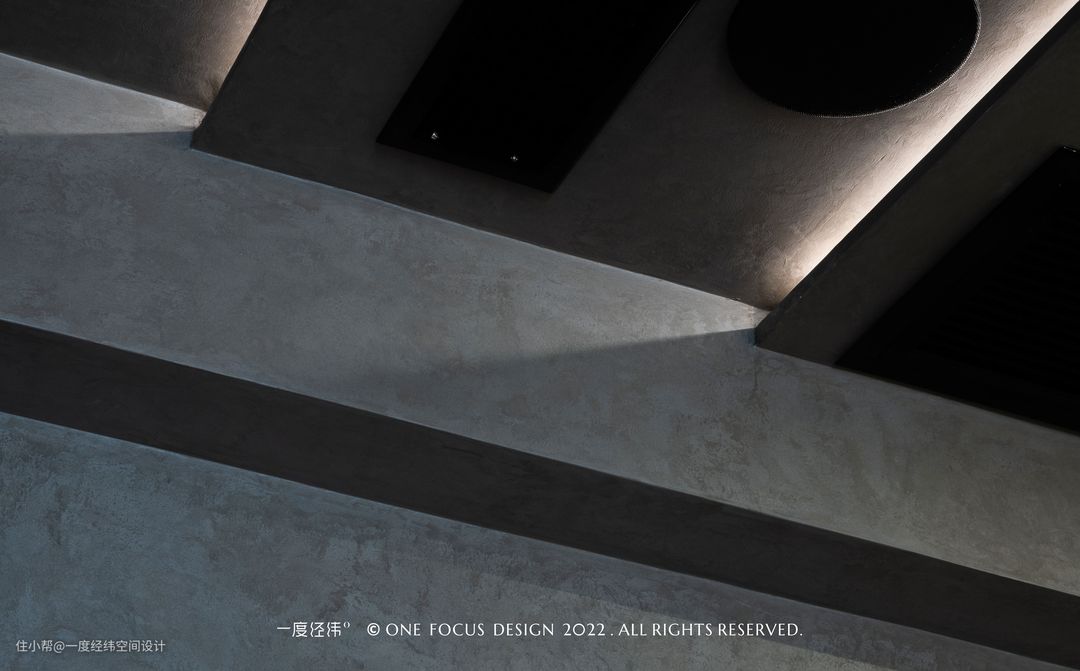 空间规划上为公共区域的通透感,采用梦幻折叠窗帘,全屋微水泥,达到天花墙面一体,层次高低层叠形成错落的视觉差异。