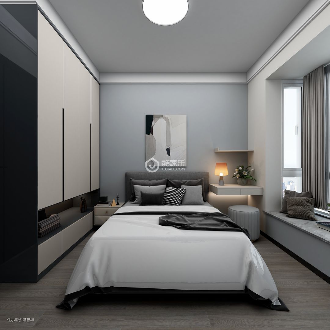 此案为现代黑白色四居户型,整体以黑白灰色系搭配,这也能彰显出屋主的内心是如此的沉稳 宁静。