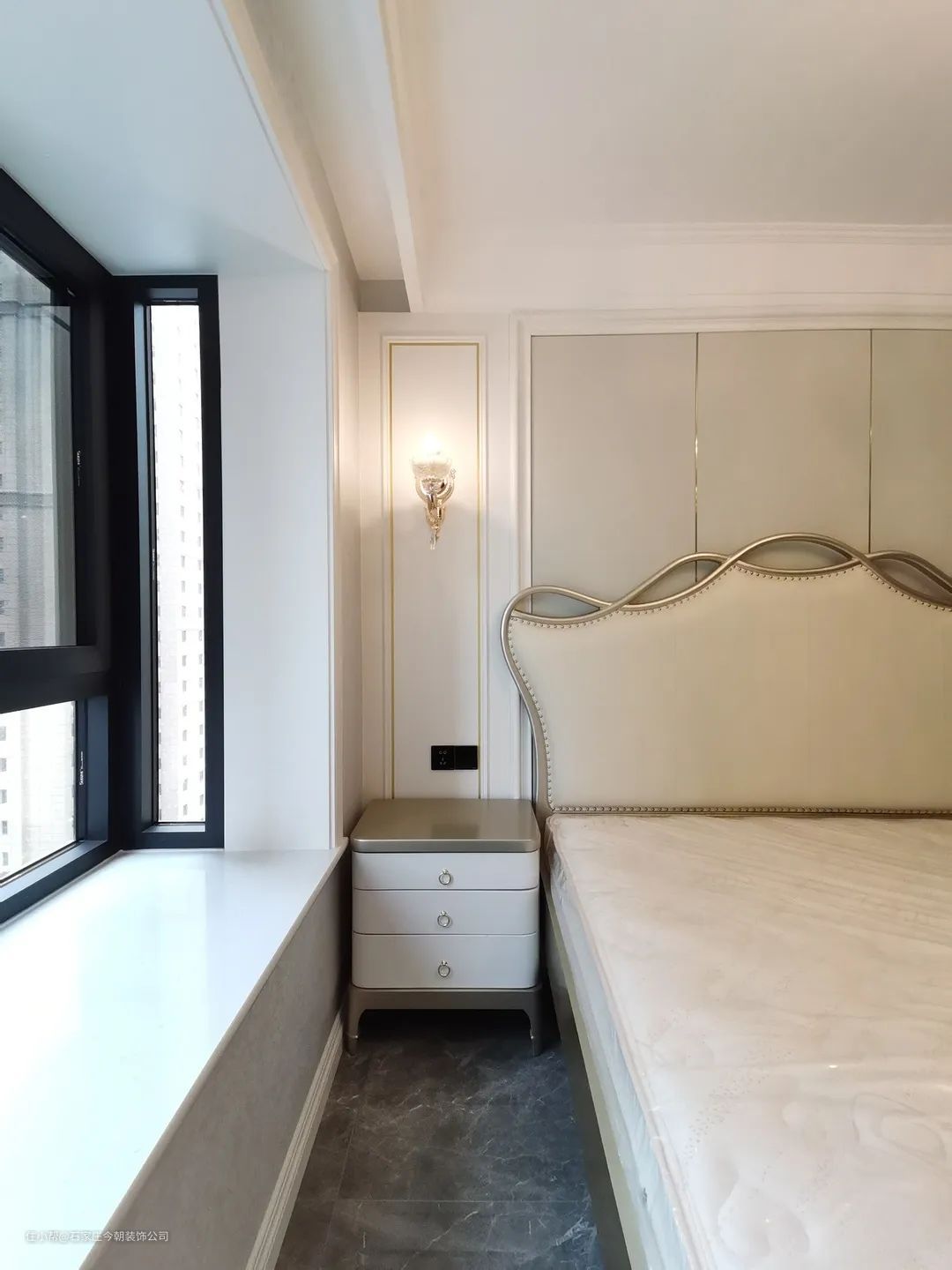 主人房选择的是安静的白灰组合,休憩的地方用分段式灯光以满足不同氛围的灯光需求。