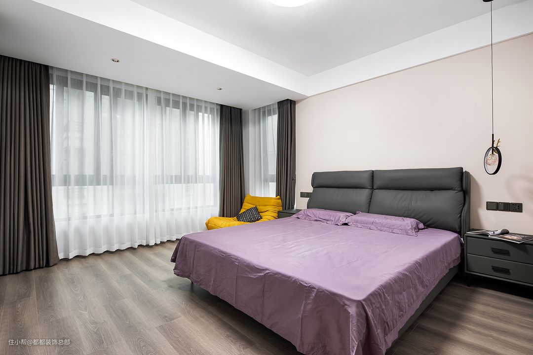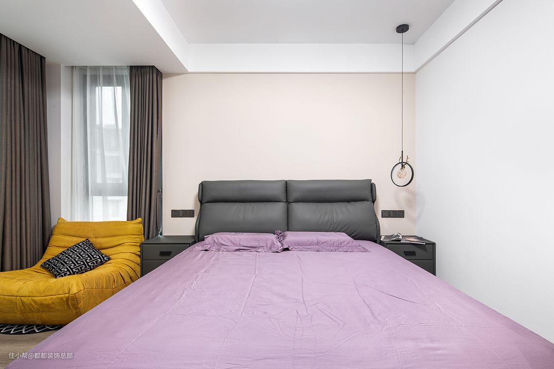 宽大厚实的床头板给人幸福的安全感,温柔粉和优雅灰的搭配,让空间高雅惬意,充盈的光线下更显质感,让每一天都熠熠生辉。