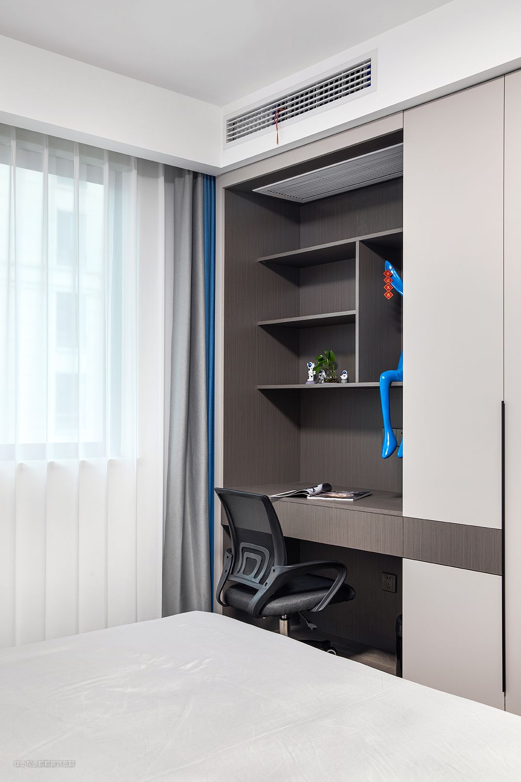 屋主酷爱阅读,将衣柜延伸出开放式书柜,收获一处安静、休闲的读书角,为屋主提供源源不断的精神食粮,这里也是假日放松、发呆的好去处。