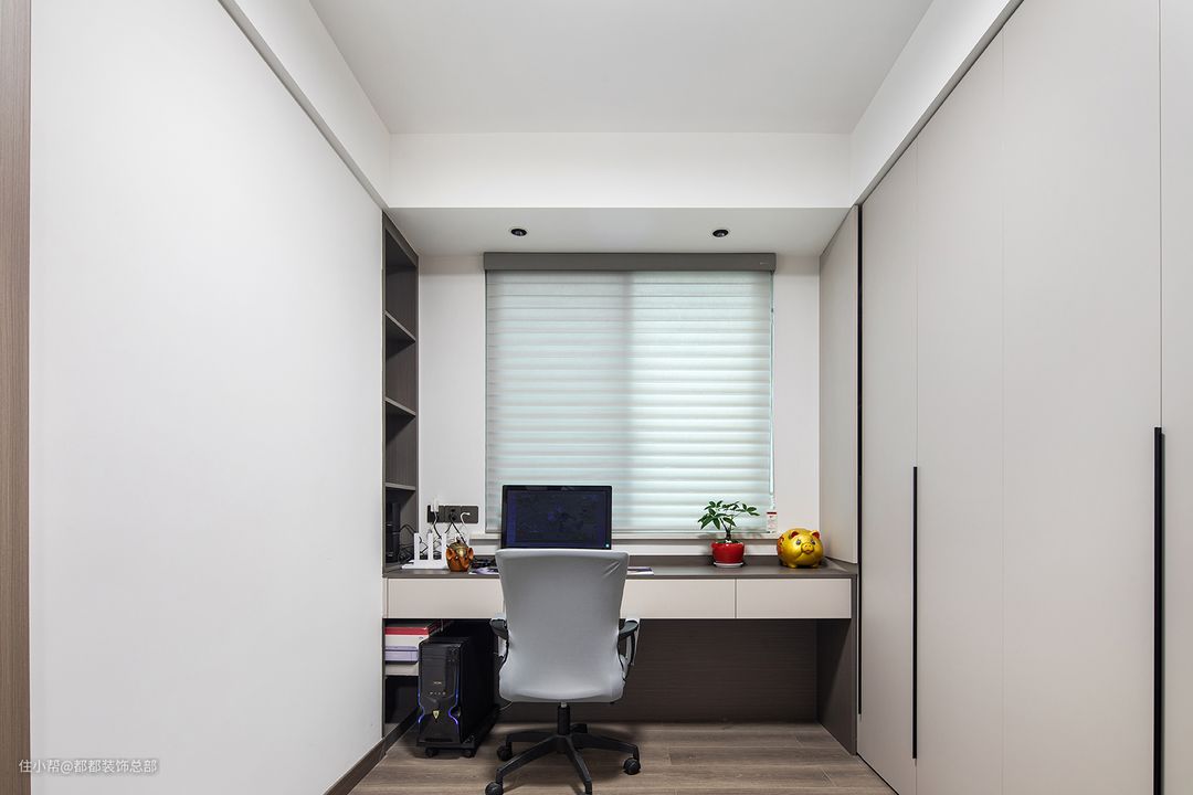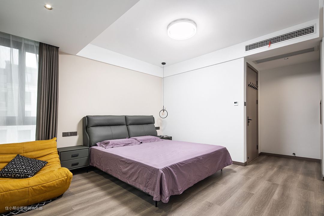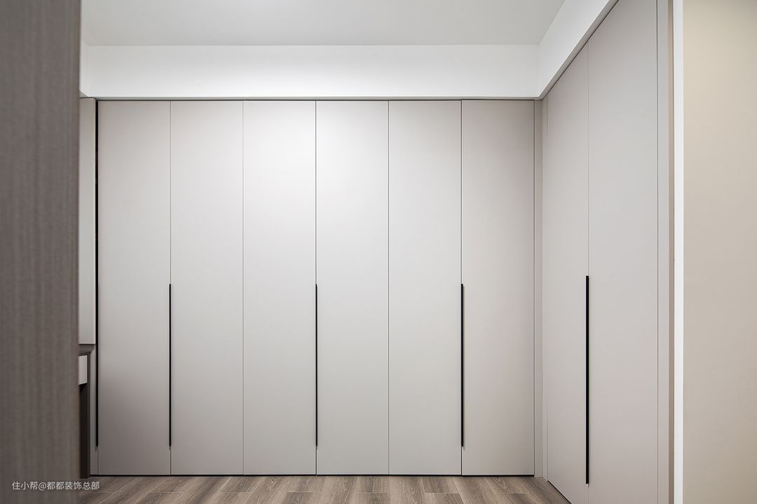 定制衣帽间可以帮忙分担双开衣柜的收纳不足问题,无主灯设计在空间上拉升空间层高,让人在都市里放慢节奏,静静享受归家的喜悦。