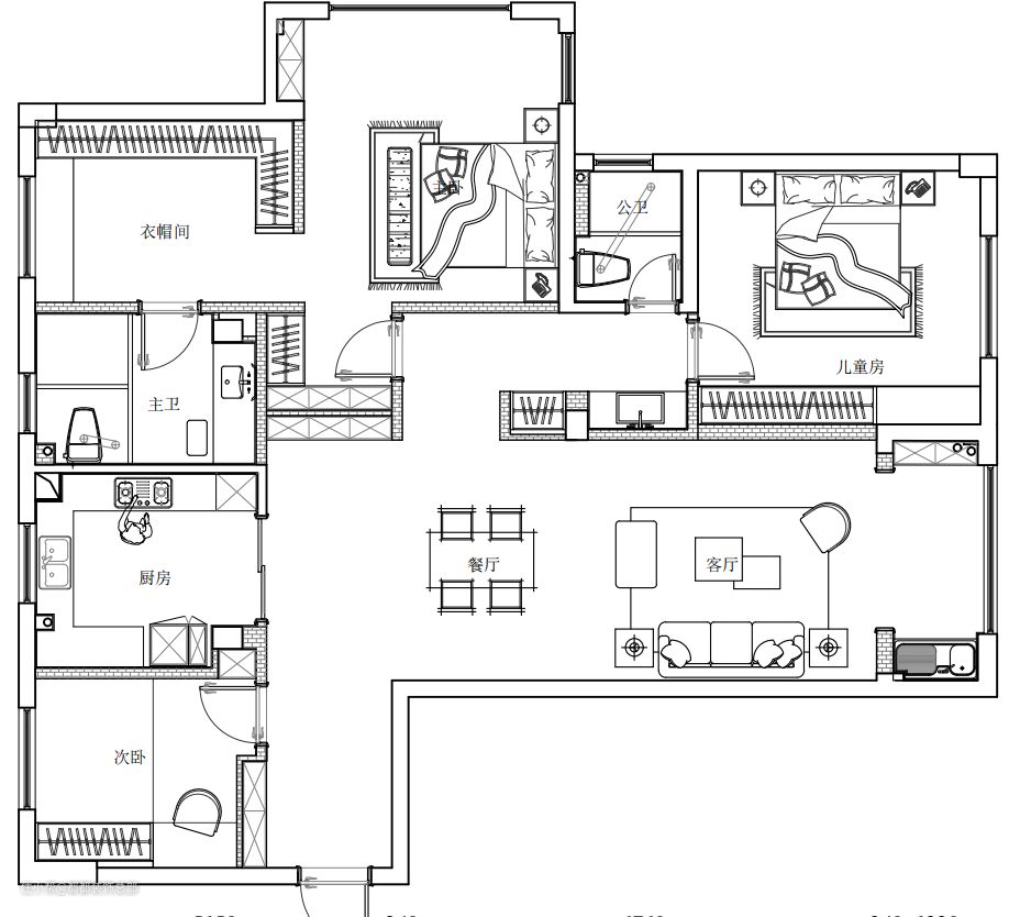 户型改造 1.把客厅朝向改成朝南,全天都有阳光照射,让家变得温馨起来; 2.主卧朝东,白天常年阳光充足; 3.设计了超大衣帽间与三分离大主卫,提升舒适感。