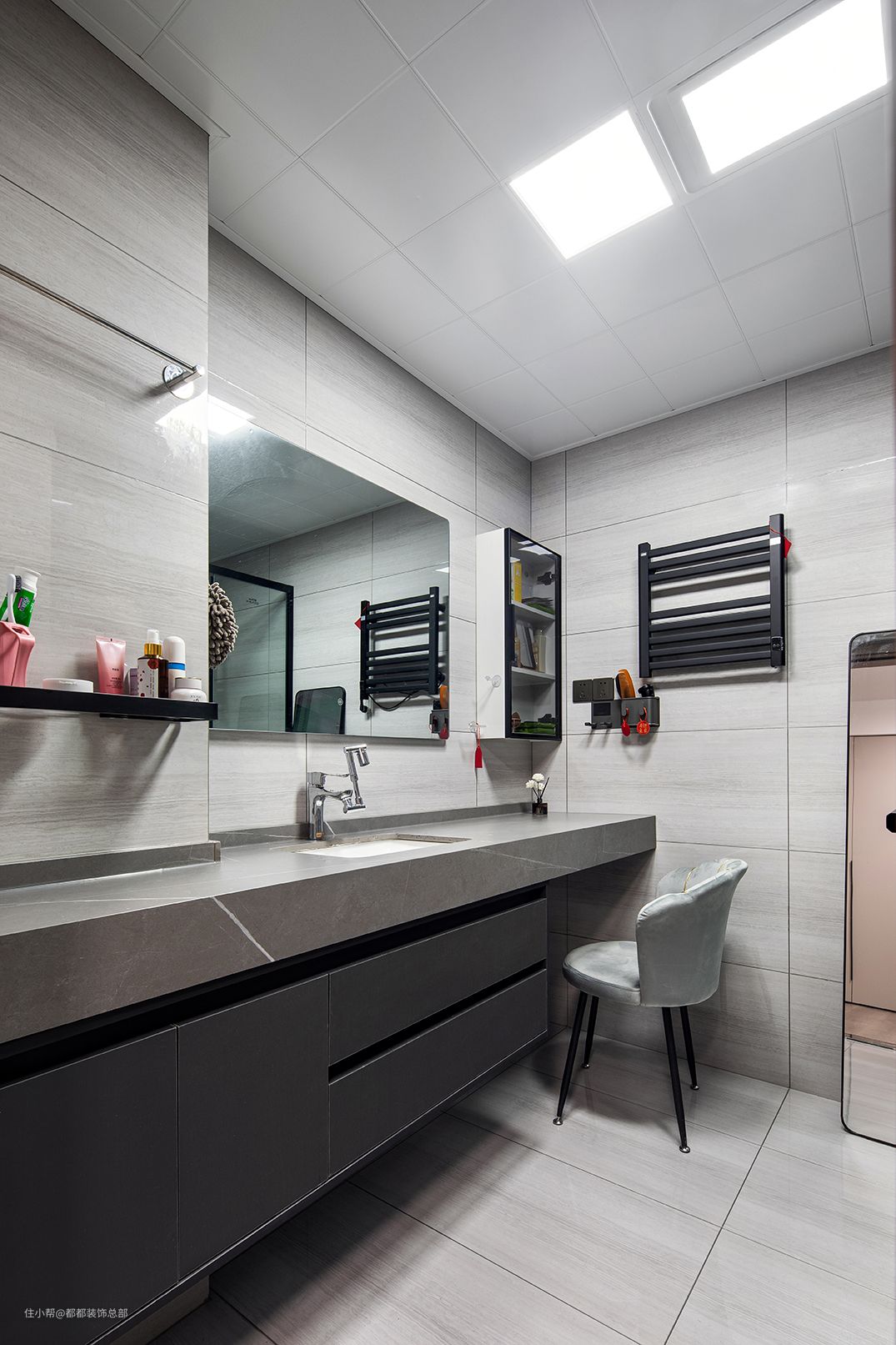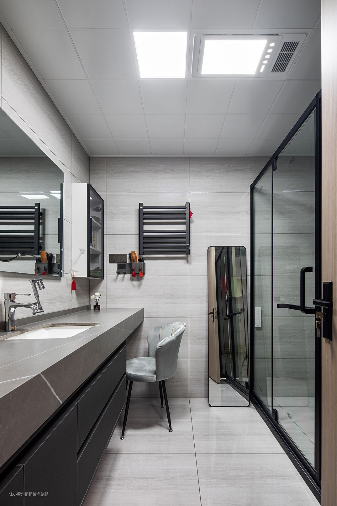 卫生间 卫生间极具现代感,在极简空间里多了些细腻,恰到好处的品质与内涵,极简的窄边框淋浴房,既起到干湿分离的隔断作用,又保留了空间的开放感,完美契合现代极简的设计,落地全身镜对于早八人来说真是太方便了,洗漱完立即就能整理仪表。