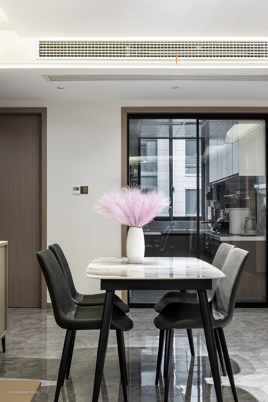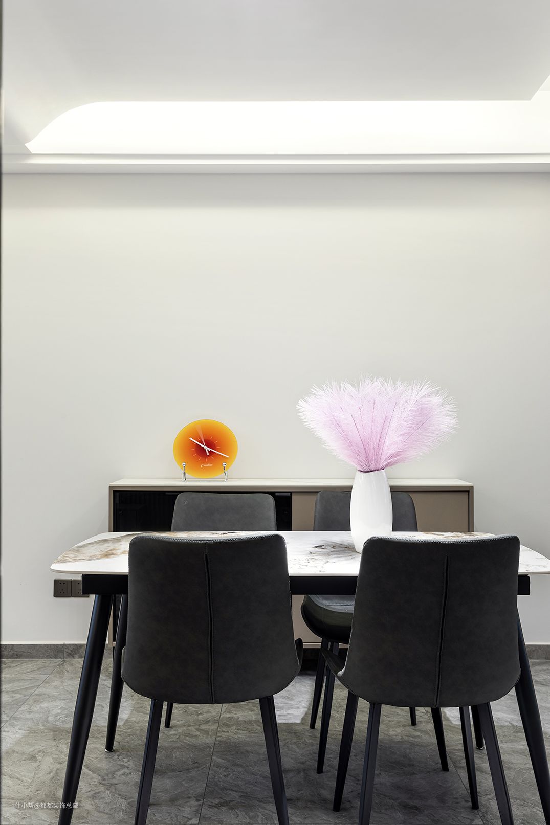 开放式的空间,黑白配的餐桌椅,散发出静谧的气质和与生俱来的低调和优雅,充分满足戴姐家庭聚餐、朋友聚会的需求,餐厅热闹而不拥挤,满载生活的温馨与小确幸。