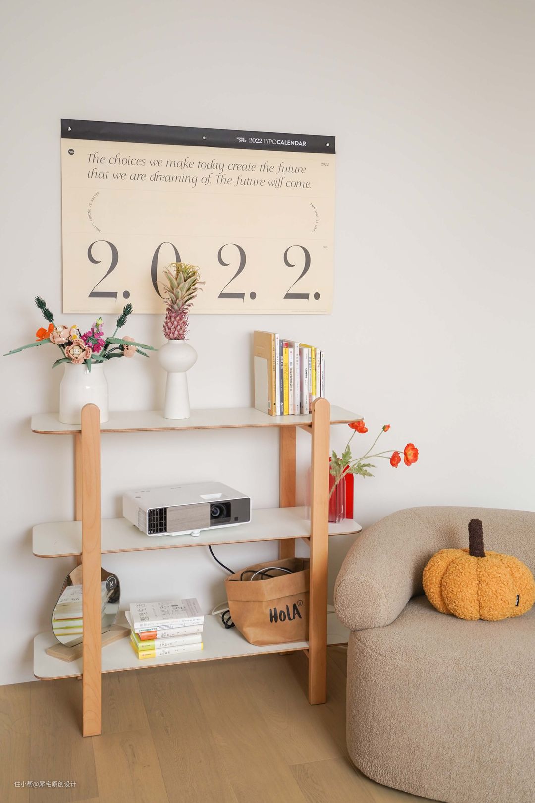 主卧这里摆上了小书架用作影音室放上投影仪,舒适的沙发,方便周末朋友聚会。