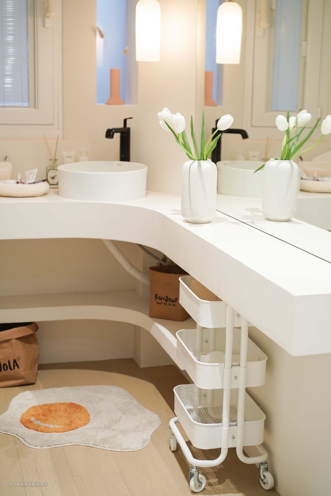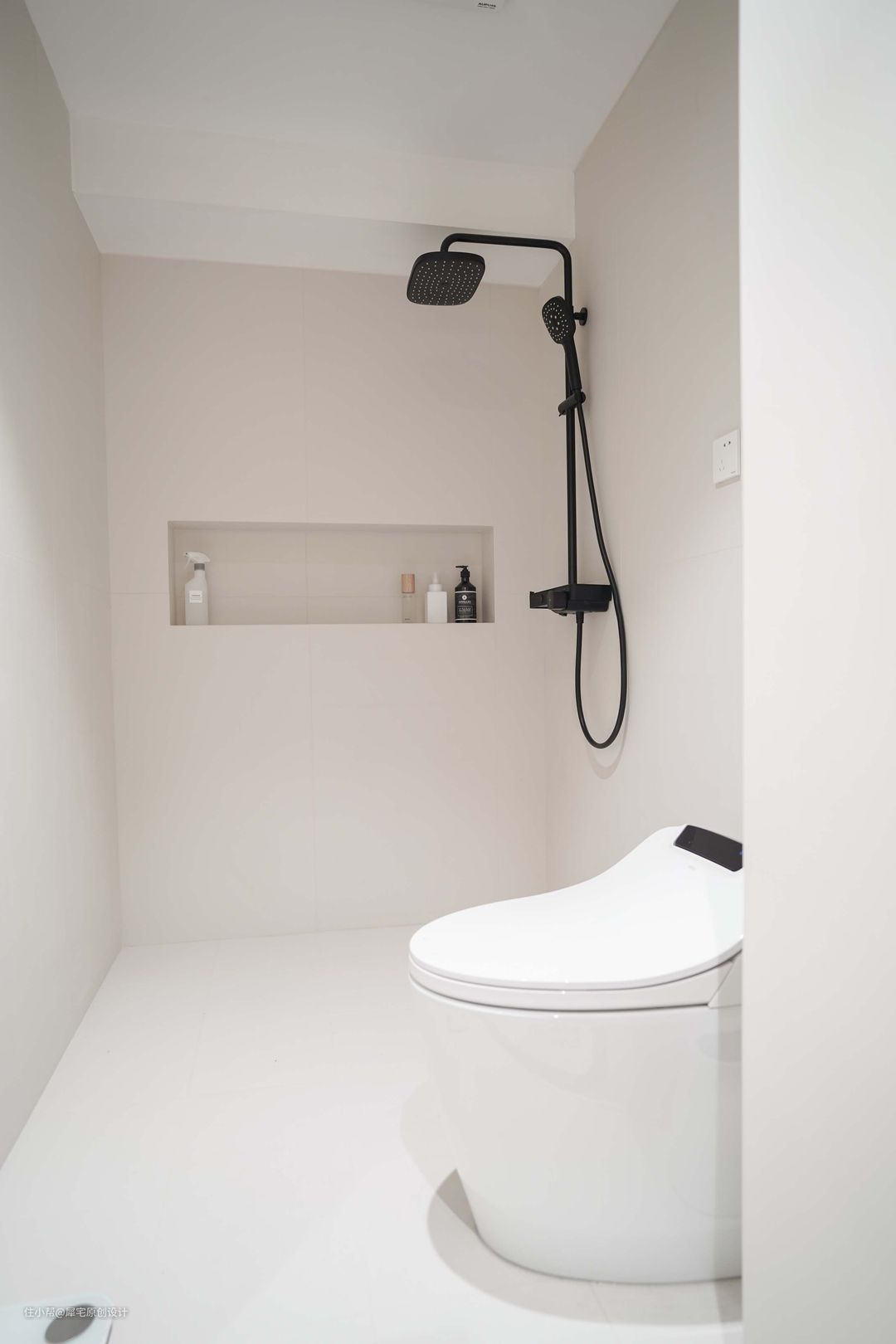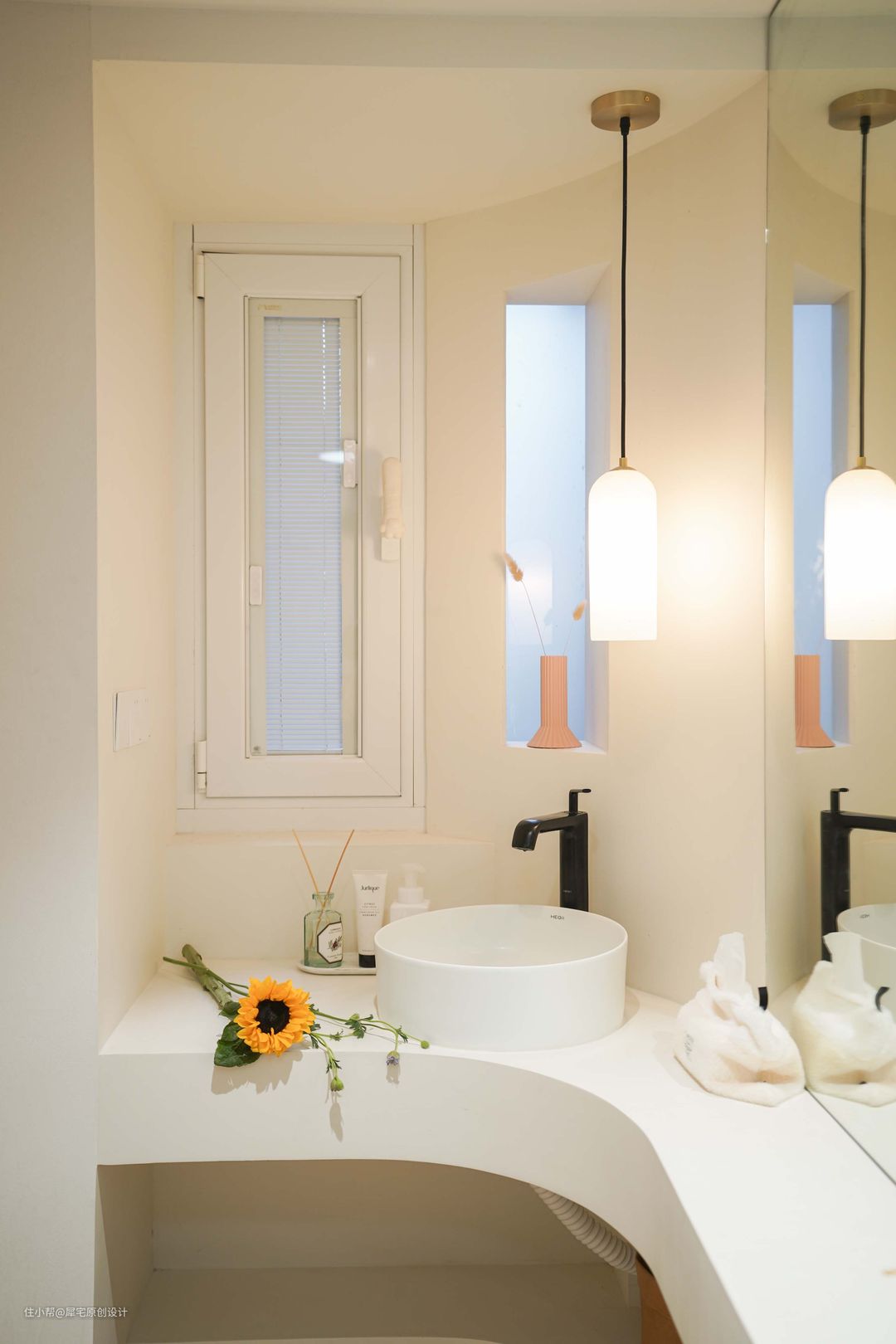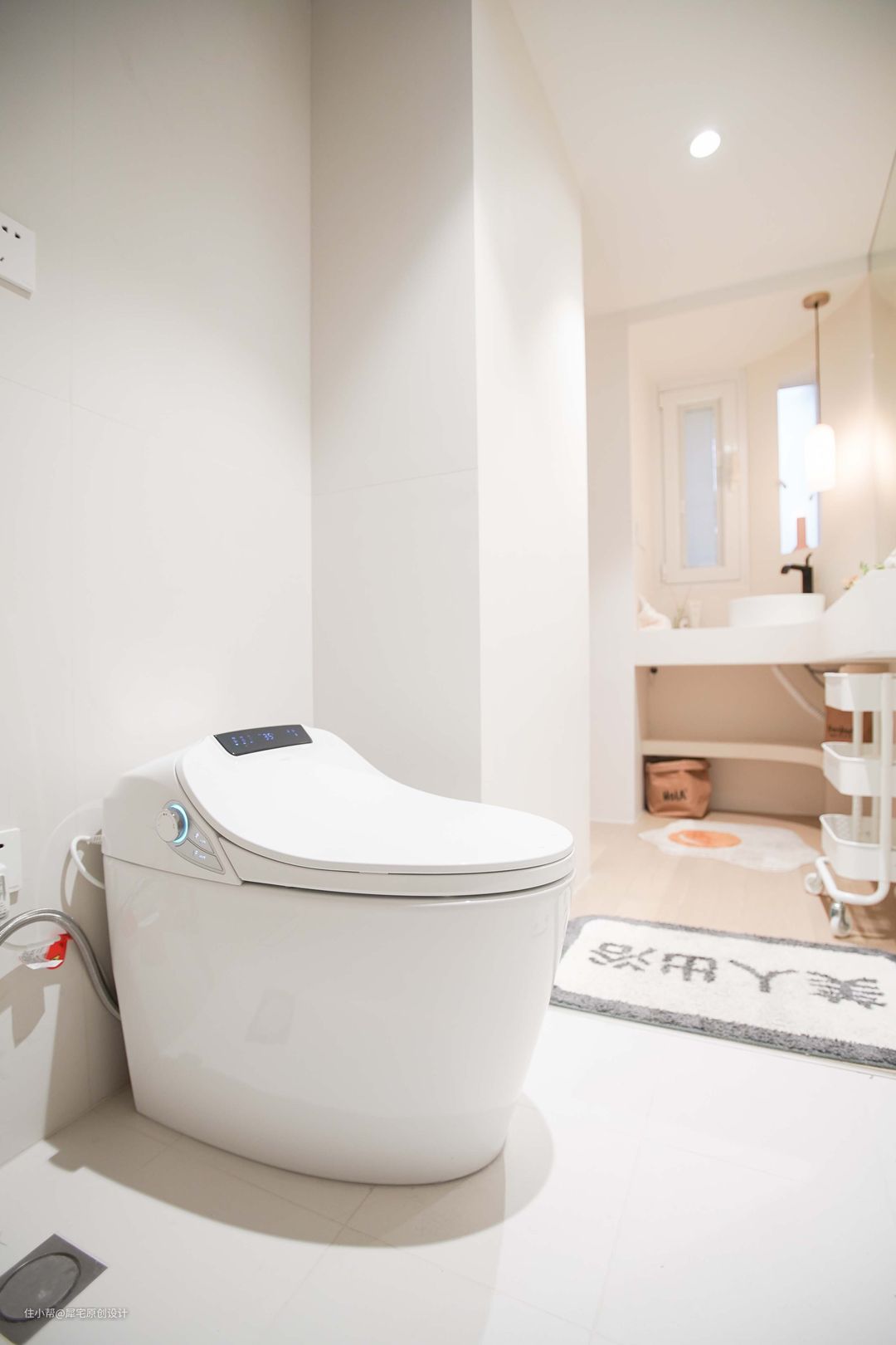 再加上微水泥瓷砖和同色美缝的加持,不仅不狭小,反而明亮和通透。