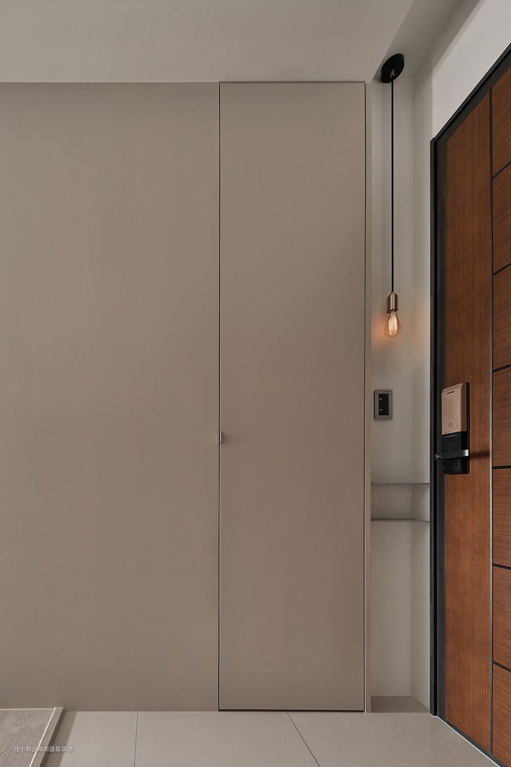 一盏夜光迎接着每日归返,随光跃动的金属层板也稳稳接住了随手一放的钥匙;磁砖与木地板形成了交界,划开家的落尘和内外之别。
