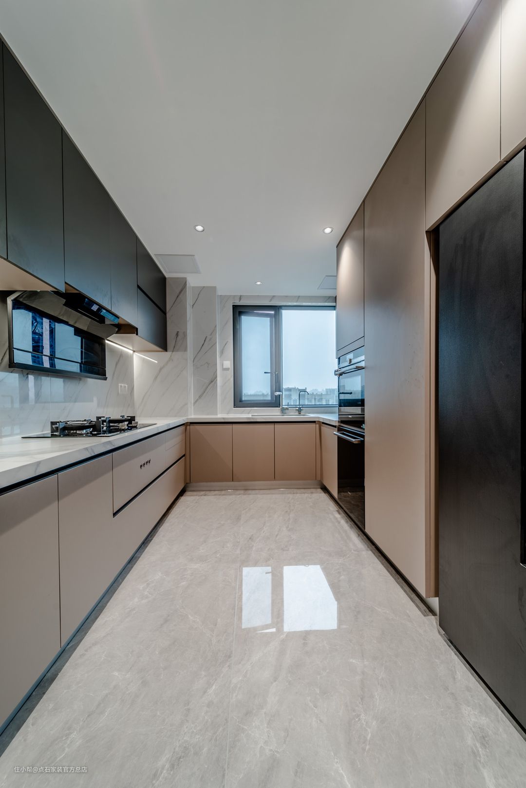 厨房区域,真的让人的感觉很舒服!各种家电和橱柜之间的衔接刚刚好,并且在颜色上给人的感觉十分的温和,契合了业主要求家的感觉。在空间利用上,对尺寸的掌控做到了极致,充分的利用了每一个空间,打造了一个干净又好用的厨房。