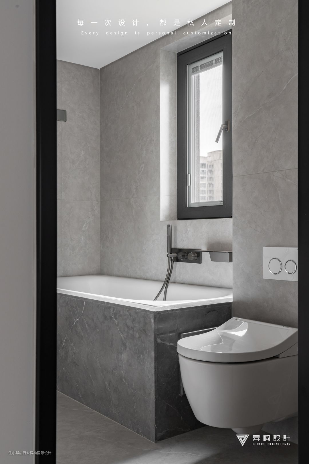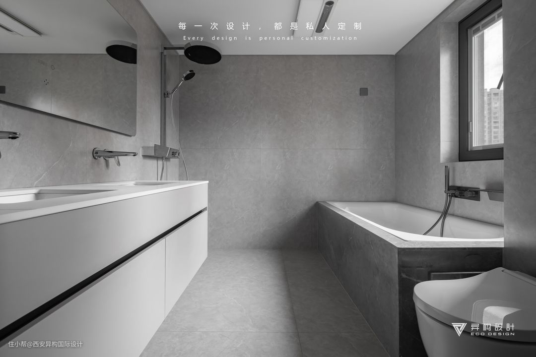 卫生间是一方独享的天地,在墙边增加嵌入式浴缸,达到空间利用最大化,浴缸和砌台做一个平面处理,让卫生无死角,打造一个舒适舒心的泡澡空间。
