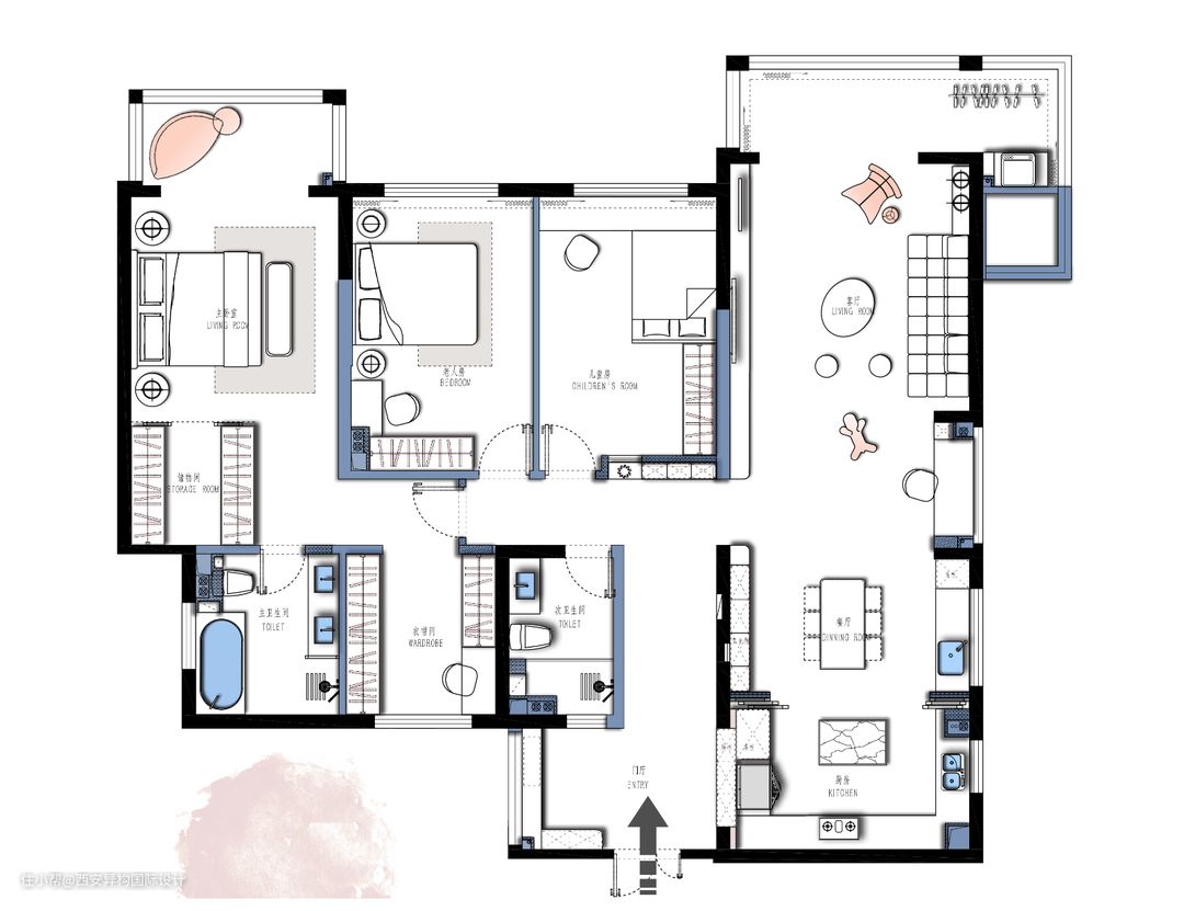 ● 收纳展示图 根据业主的收纳需求,给各个空间规划储物布局,便于日常使用。