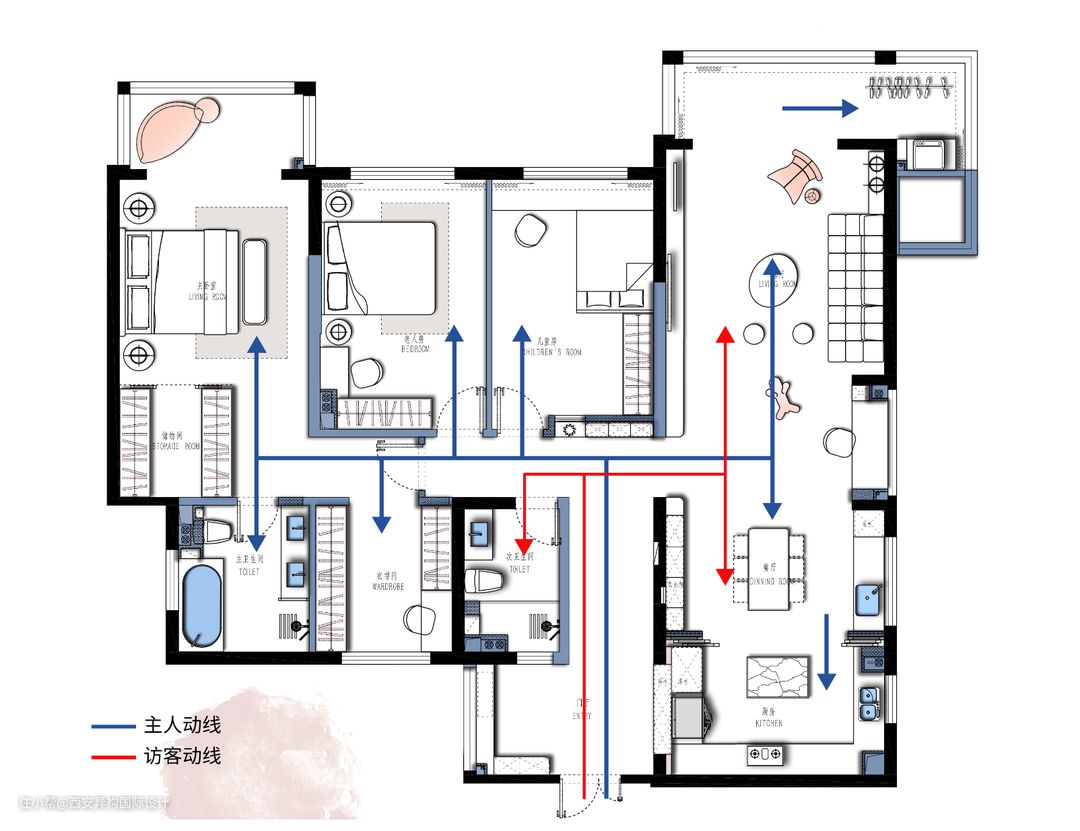 ● 动线展示图 优化后的动线清晰明了,布局整齐,让生活起居都更加便利。