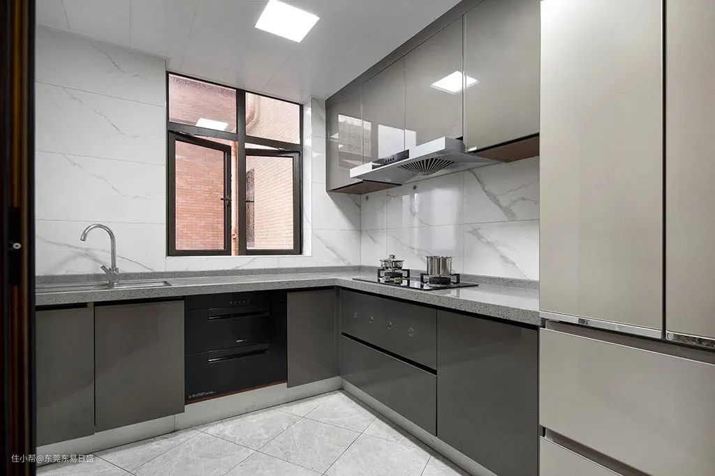无论是哪种风格的设计,厨房的功能性依旧是大家非常重视的环节,大面积的橱柜增加了厨房的收纳空间,直角设计的厨房构造让厨房的功能性更加完善,白色调的瓷砖给厨房的清洁提供了更多的便利,饭菜佳肴在这个空间制作出来,都别具一番风味了起来。