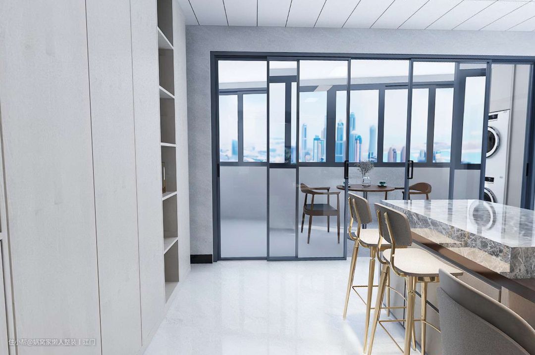 简洁的配色以及玻璃门+清洗区的开窗设计,减少使用的繁琐感,使厨房的采光更上一层楼,整体通透轻盈,在做饭的时候心情不会沉闷压抑。L型的厨台设计将空间合理利用,上下橱柜储物空间充足,餐具厨具都可以被归纳的井井有条。