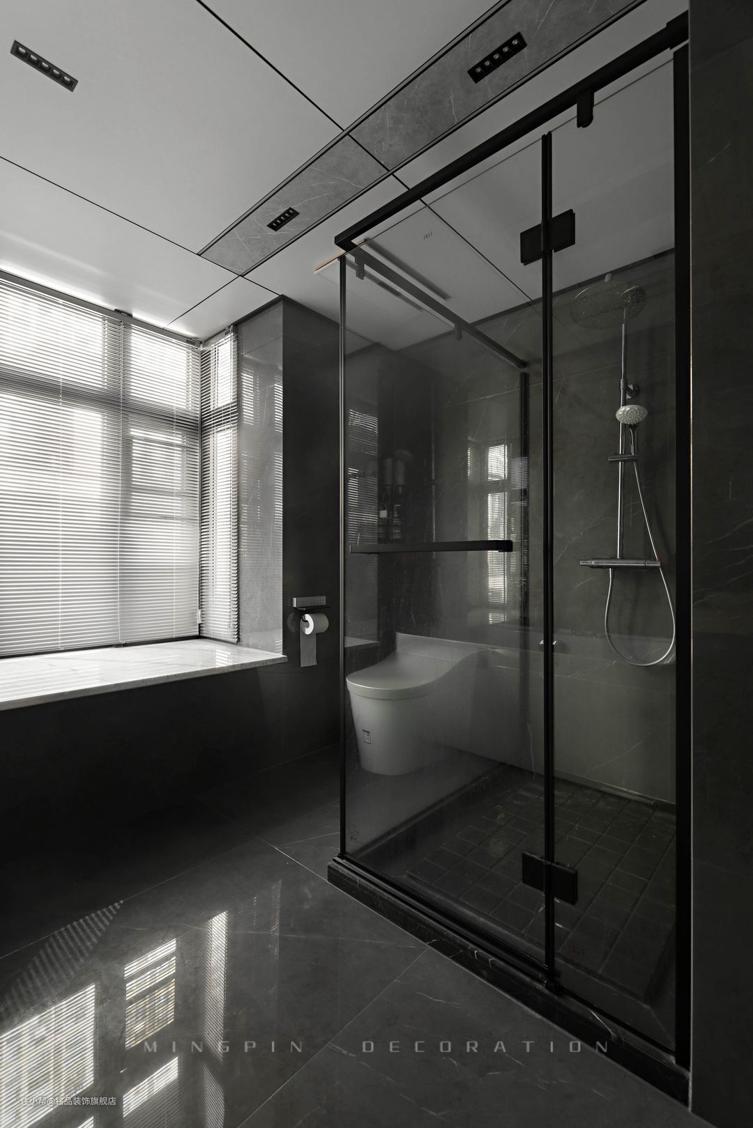 卫生间墙面做了到顶的防水墙,保证业主的使用感受。同时考虑到实际的使用感受和感官效果,我们选择平开金属玻璃门(淋浴房面积:900*900cm)#卫生间 #玻璃房 #干湿分离