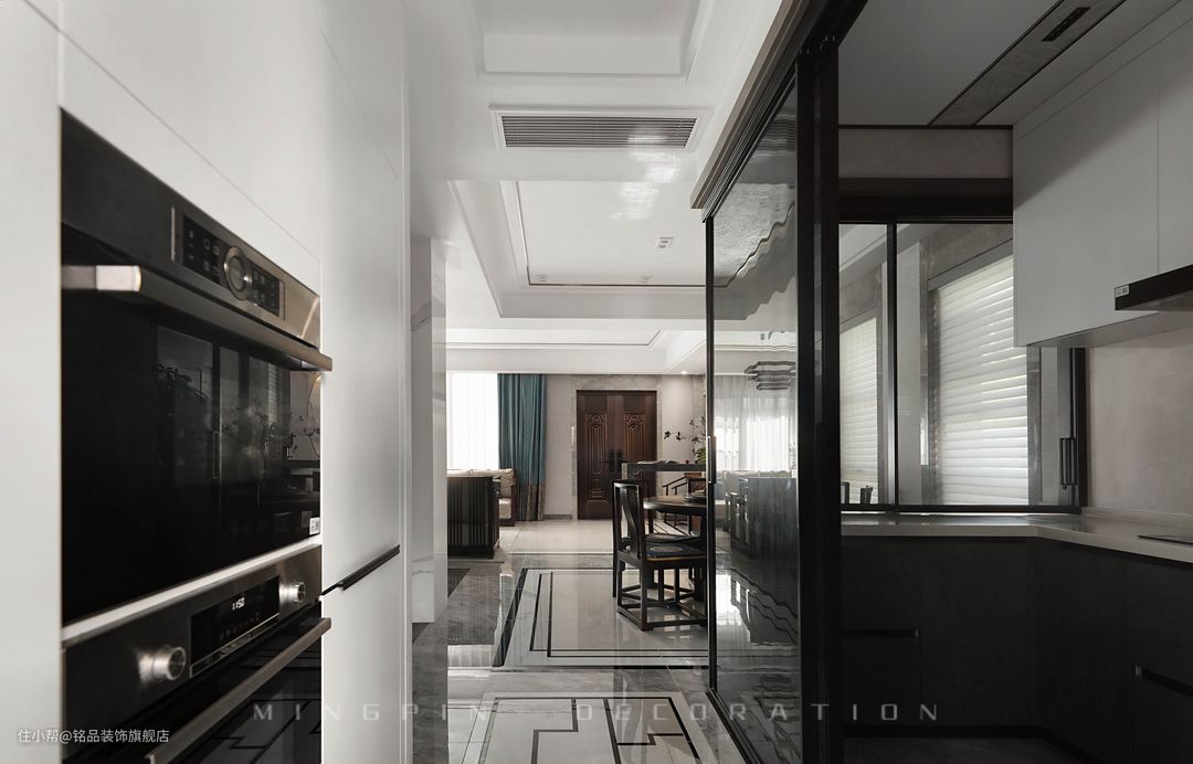 项目地址 / Address:北辰奥园 设计施工 / Co :铭品装饰 风格 | Style:新中式 项目面积 | Area:300㎡ 设计理念:一直在设计的矛盾中寻求突破和解决空间问题。善于结合生活将空间重组,把空间特色发挥到极致,强调功能与美感平衡,尊重使用者的真实需求。生活方式决定空间形态,为很多业主量身打造了属于他们自己别具一格的家。 设计亮点:兼顾开放式厨房的同时也考虑到中式厨房的油烟的味道问题的解决,同时在厨房做饭也能更餐厅的互动,更加有趣味性,客厅的形式以及餐厅和玄关之间是隔而不断的手法。#户型 #户型图 #平面设计图