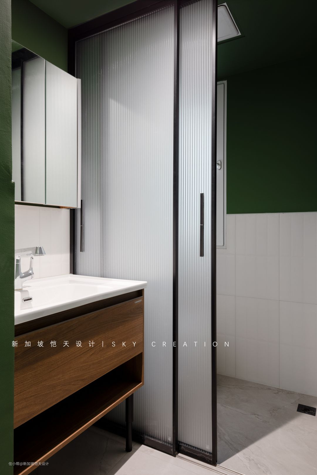 ▲卫生间改造前 原客卫不足3㎡,难免有些拥挤。 重新规划客卫空间,原区域改为盥洗区和马桶区,并采用一门到顶长虹玻璃推拉门做隔断,小空间更通透、开阔。