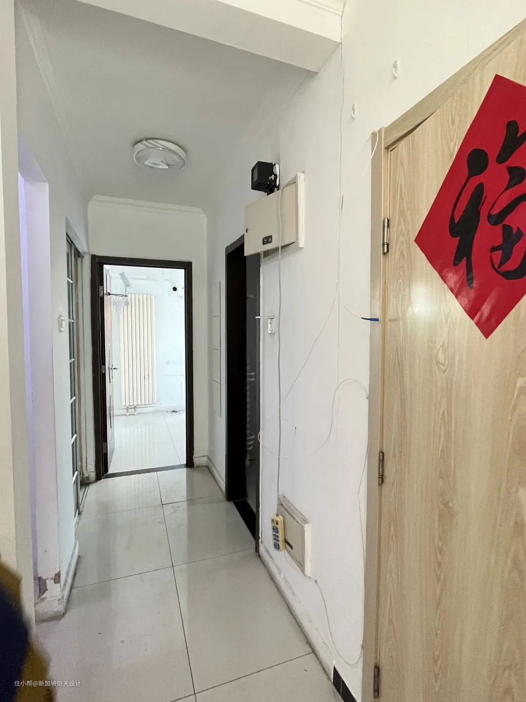 ▲玄关改造前 原户型的入户是一个狭窄的走廊,缺乏储物空间;两侧的暗室比较鸡肋,由于空间受限,只能做一组柜体,收纳力及空间利用率都不高。