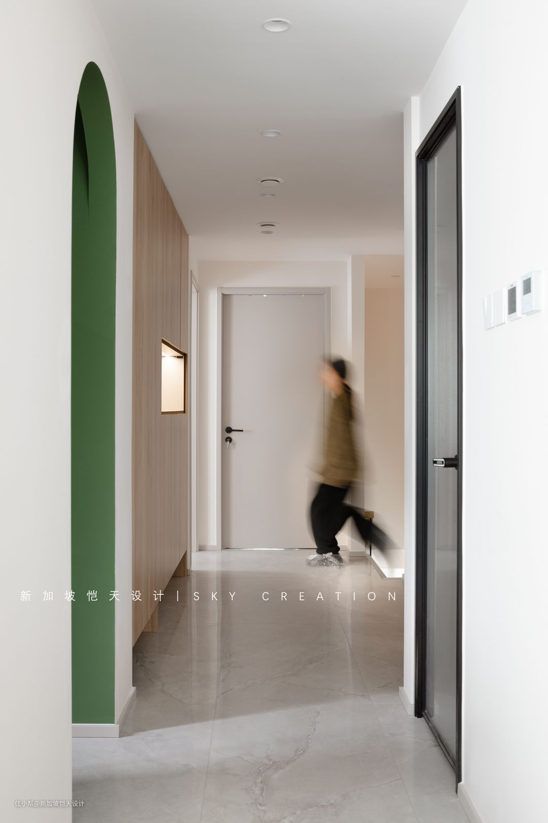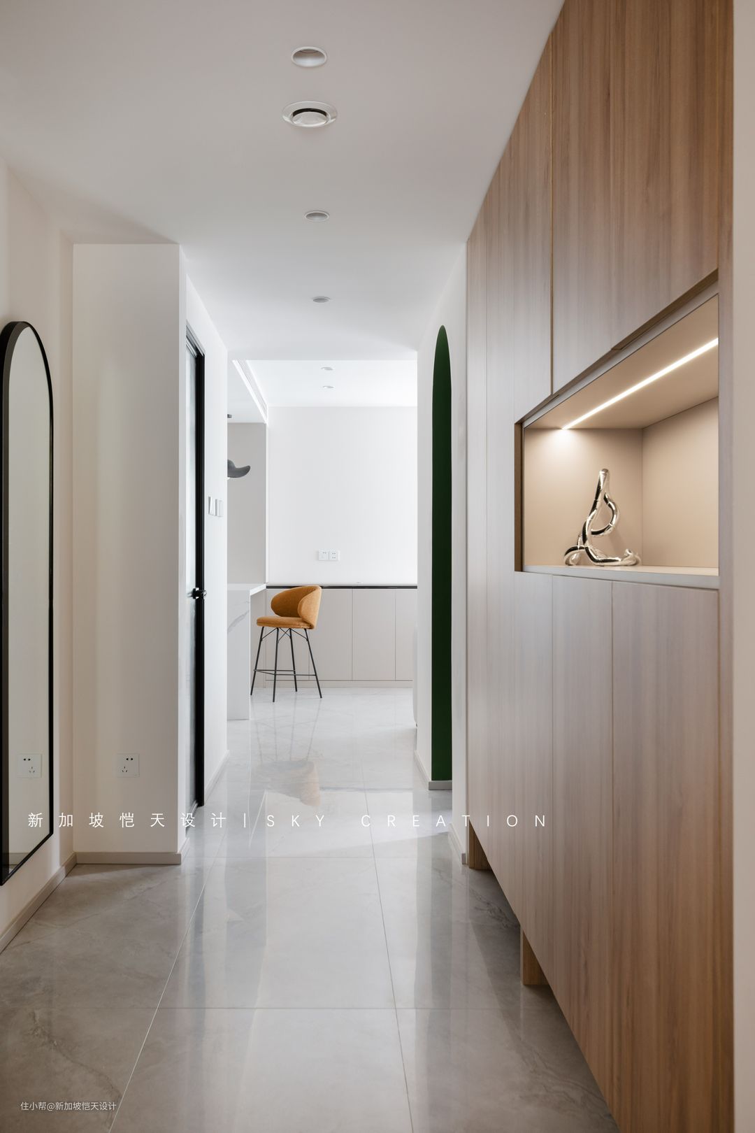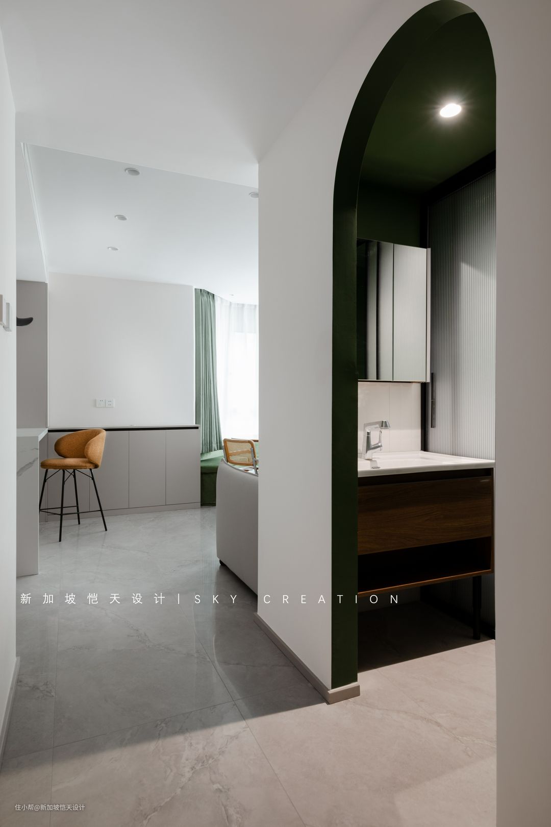 拱形门洞,打造空间层次感,且其形态、色调,与餐厅交相呼应,一眼望去更和谐、整体。
