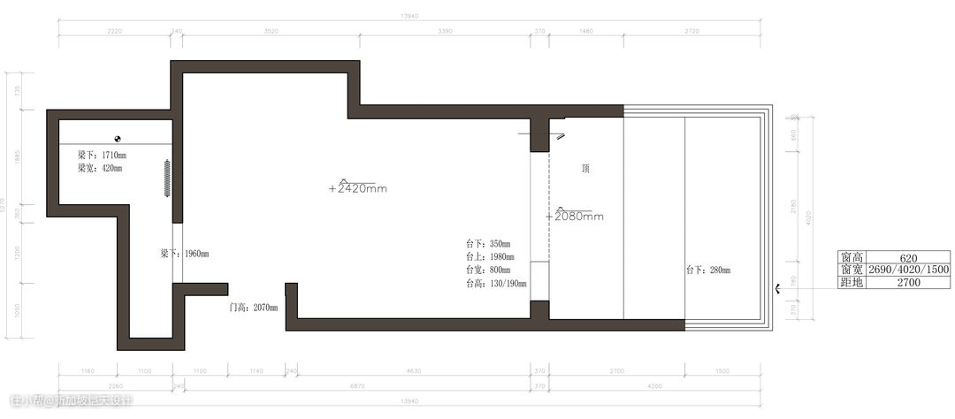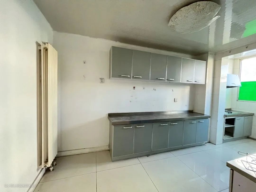 ▲厨房改造前 原一字型长条厨房,一方面空间利用率低,另一方面也不能满足和客餐厅间的交流。