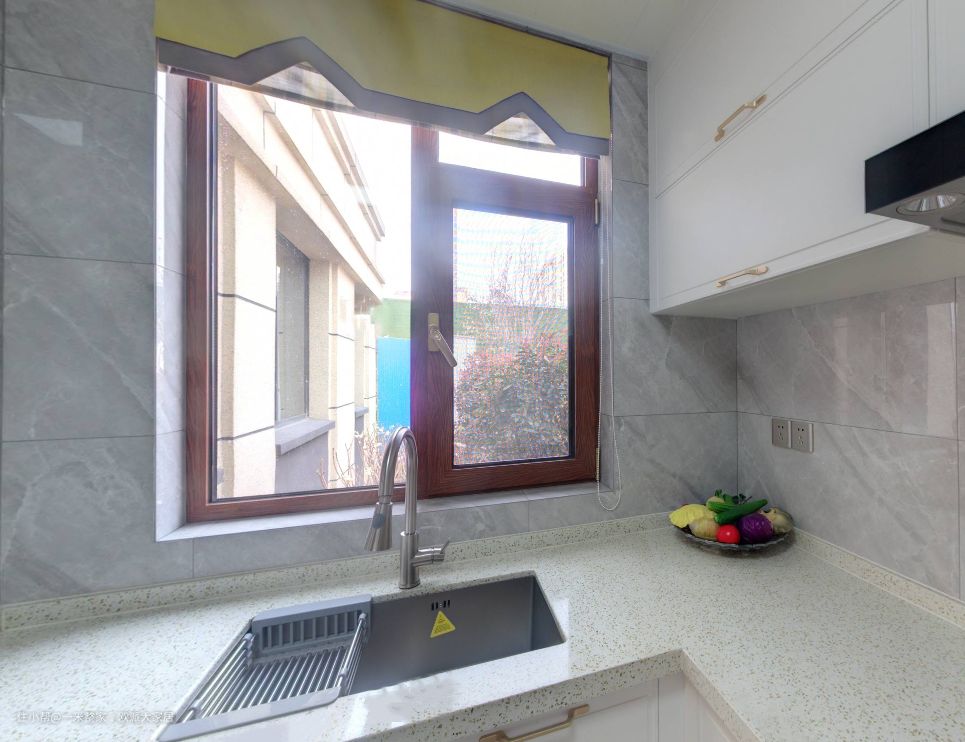 清洗区域安装在了窗户下面,这样能够充分的保证了清洗时的通风和采光,避免了细菌的滋生,还能减少了下雨时雨水飘进来对地板或者柜子造成的伤害。窗户上还安装上了窗帘,既可以做到了遮阳还能保护隐私。