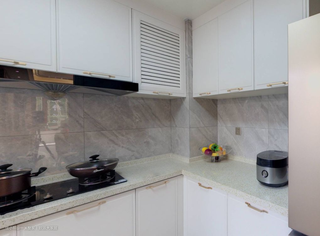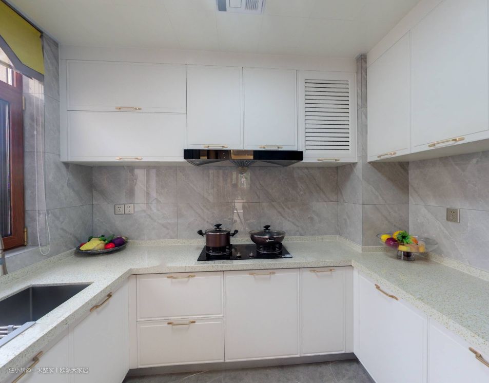 厨房的橱柜用的是欧派橱柜,样式选择了纯白实木颗粒板演示的,和客厅的沙发背景墙做了呼应。U型的橱柜设计充分的利用了厨房的拐角位,同时又有着良好的实用性与美观性,有充分的活动空间,在厨房做饭时可以灵活的走动也不怕会碰到,丰富了使用厨房的人的厨房生活。